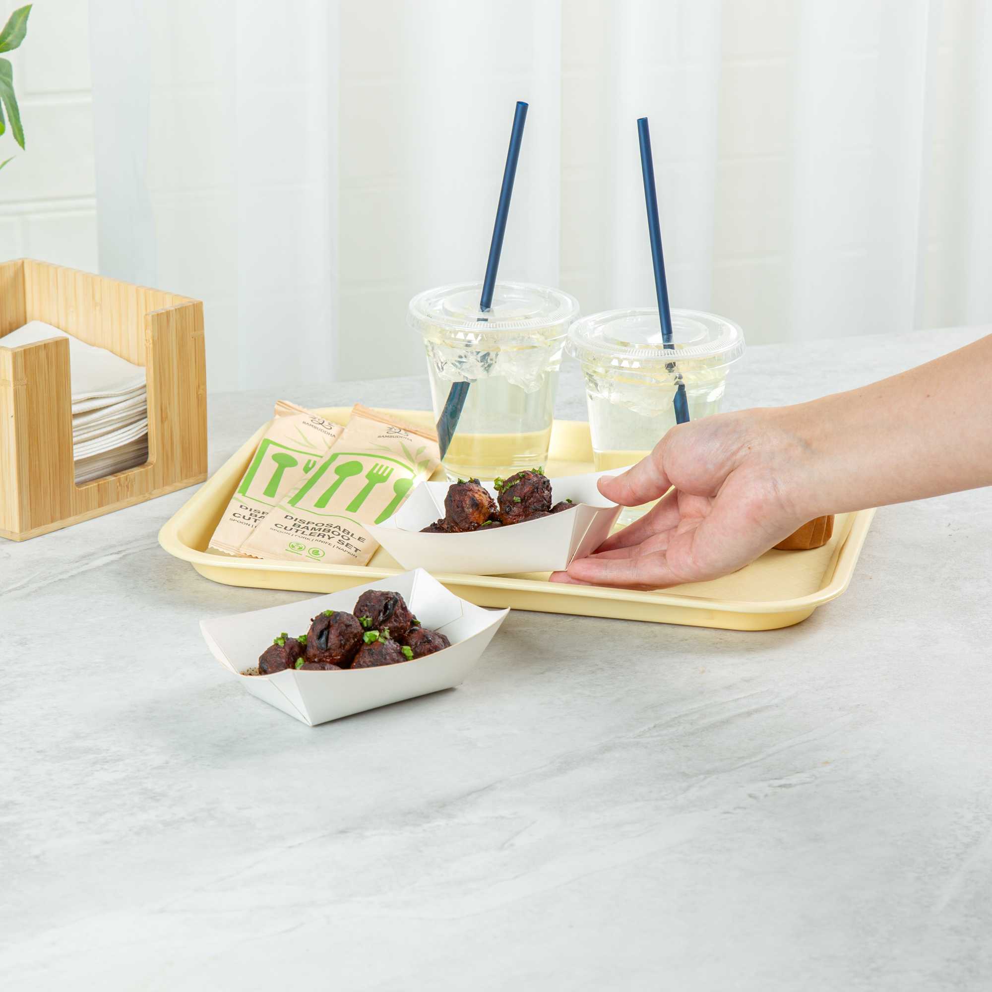 With numerous options to choose from, these paper food trays come in multiple colors to complement all kinds of food service establishments. Pick the paper boat that best fits your aesthetic!
