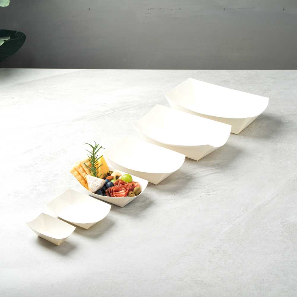 Made from premium paper, these disposable paper food boats are sturdy and reliable to support hefty and saucy dishes. Don't worry about your serving supplies breaking!