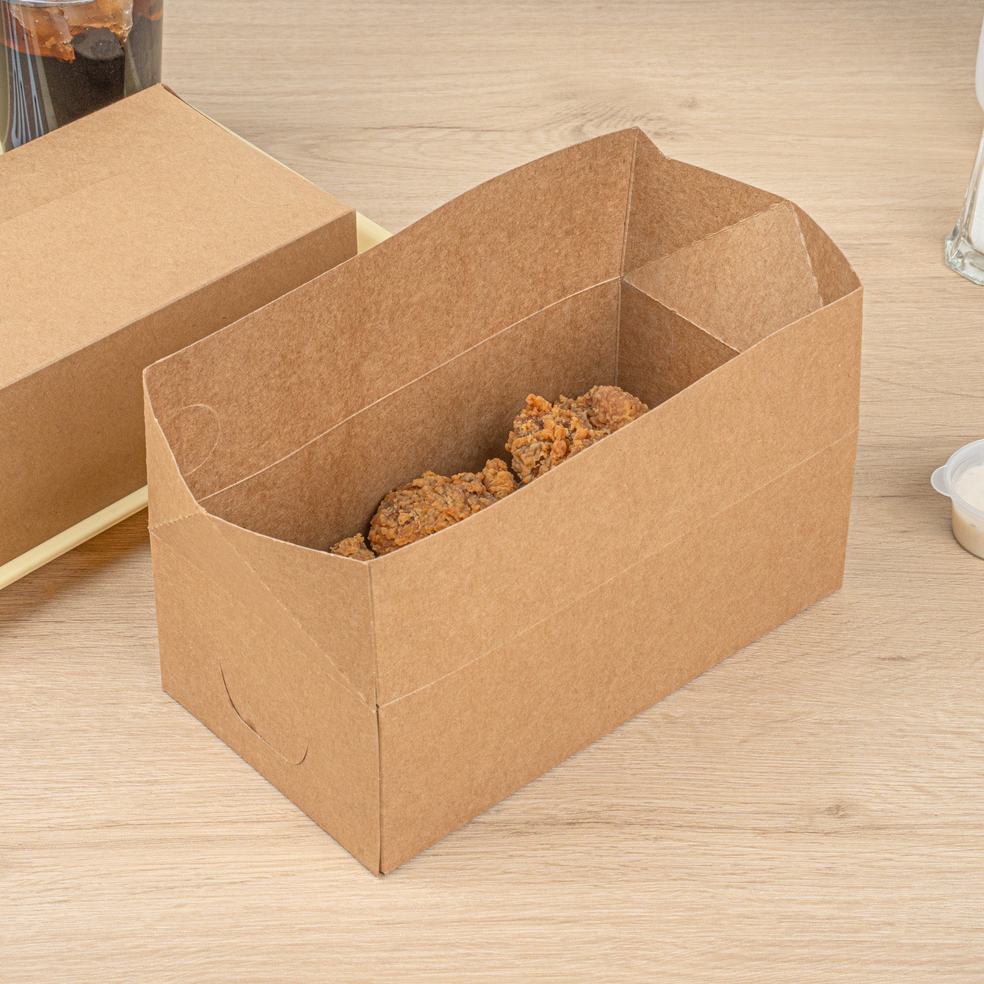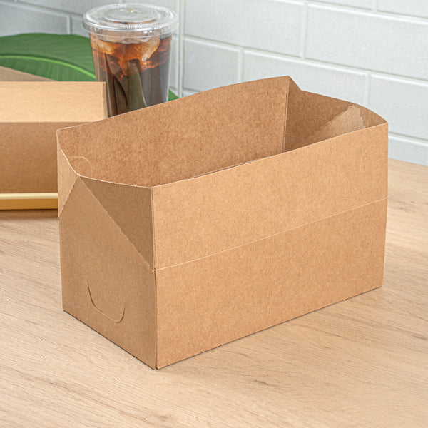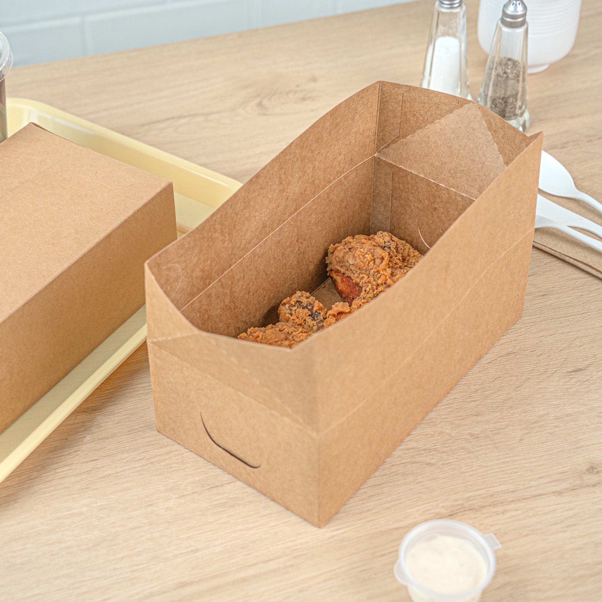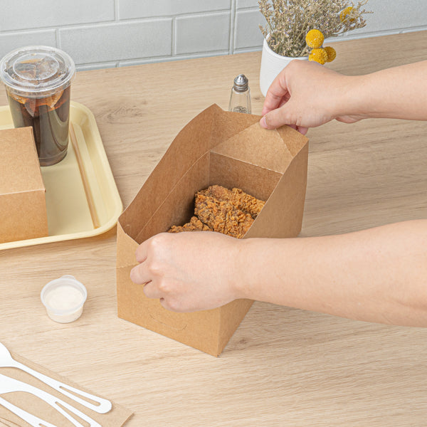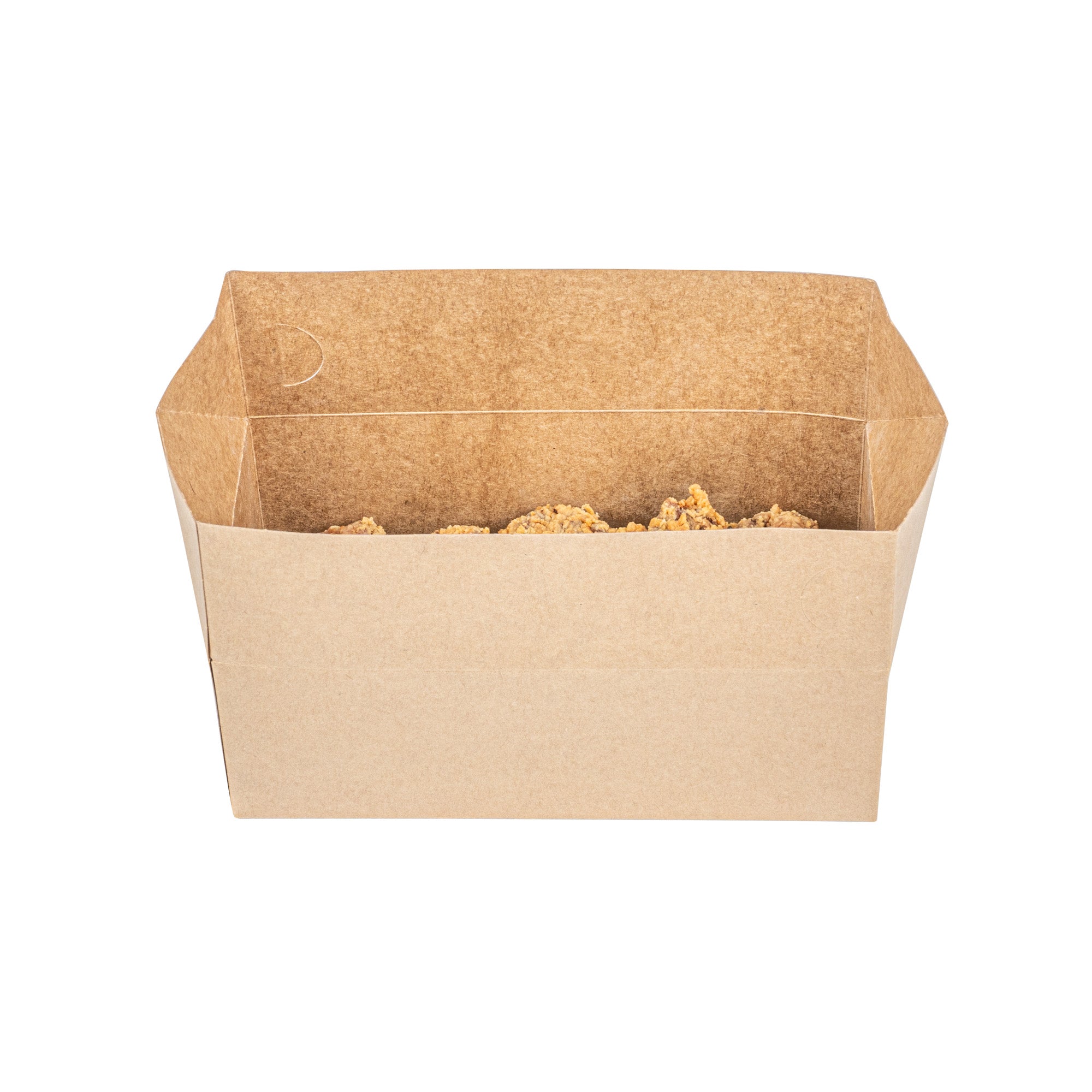 Ensure a spill-free dining experience with our Bio Tek Spill-Resistant Takeout Box. This kraft paper box features a fast top closure that guarantees a secure seal, making it an ideal choice for restaurants and cafes seeking reliable food transportation solutions. Equipped with a greaseproof lining, this food packaging box prevents oil and sauce leaks, preserving the freshness of meals and maintaining customer satisfaction. Measuring 8.9 inches in length, this eco-friendly takeout box boasts a generous 71-ounce capacity to accommodate a variety of meal sizes, perfect for catering services and food trucks. Crafted from recyclable paper, it supports sustainability initiatives by minimizing waste and promoting eco-friendliness. Enhance your foodservice operations by choosing an efficient and sustainable packaging solution. Each order includes 400 Bio Tek Spill-Resistant Takeout Box.