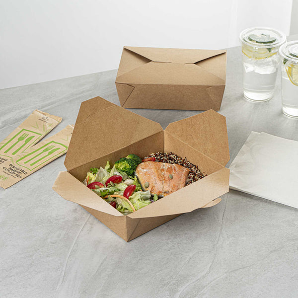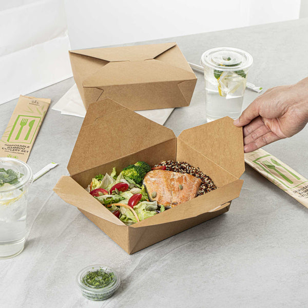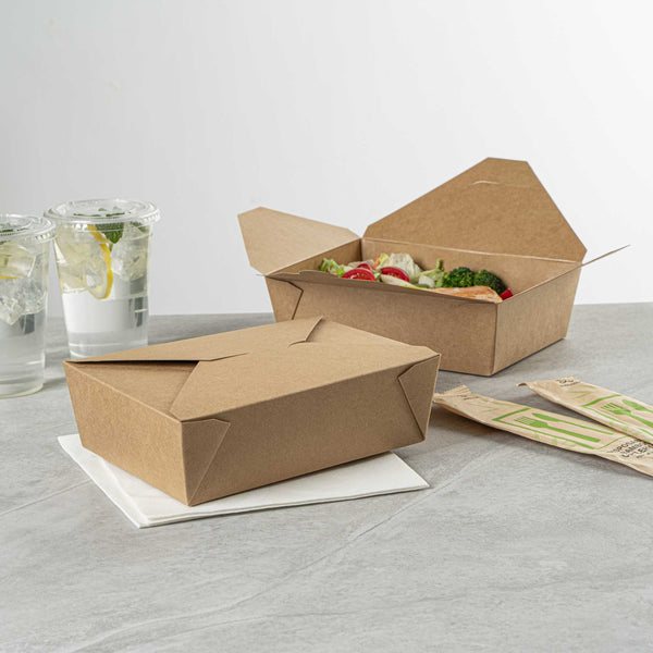 No matter the size of your dish, our disposable food boxes are available in different capacities to accommodate any meal. Choose from our soup, noodle, salad, or rectangle containers to easily pack and take food anywhere.