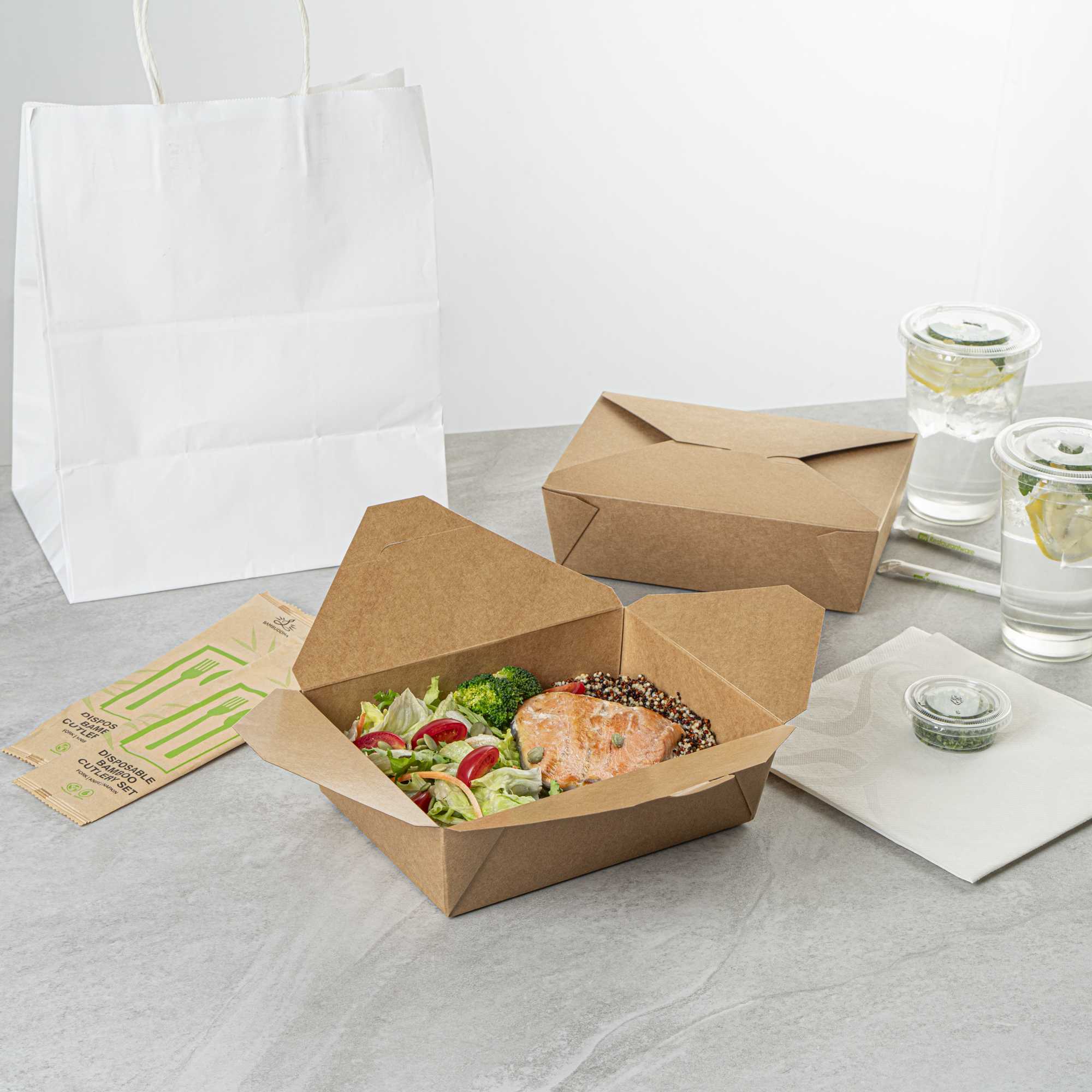 No matter the size of your dish, our disposable food boxes are available in different capacities to accommodate any meal. Choose from our soup, noodle, salad, or rectangle containers to easily pack and take food anywhere.