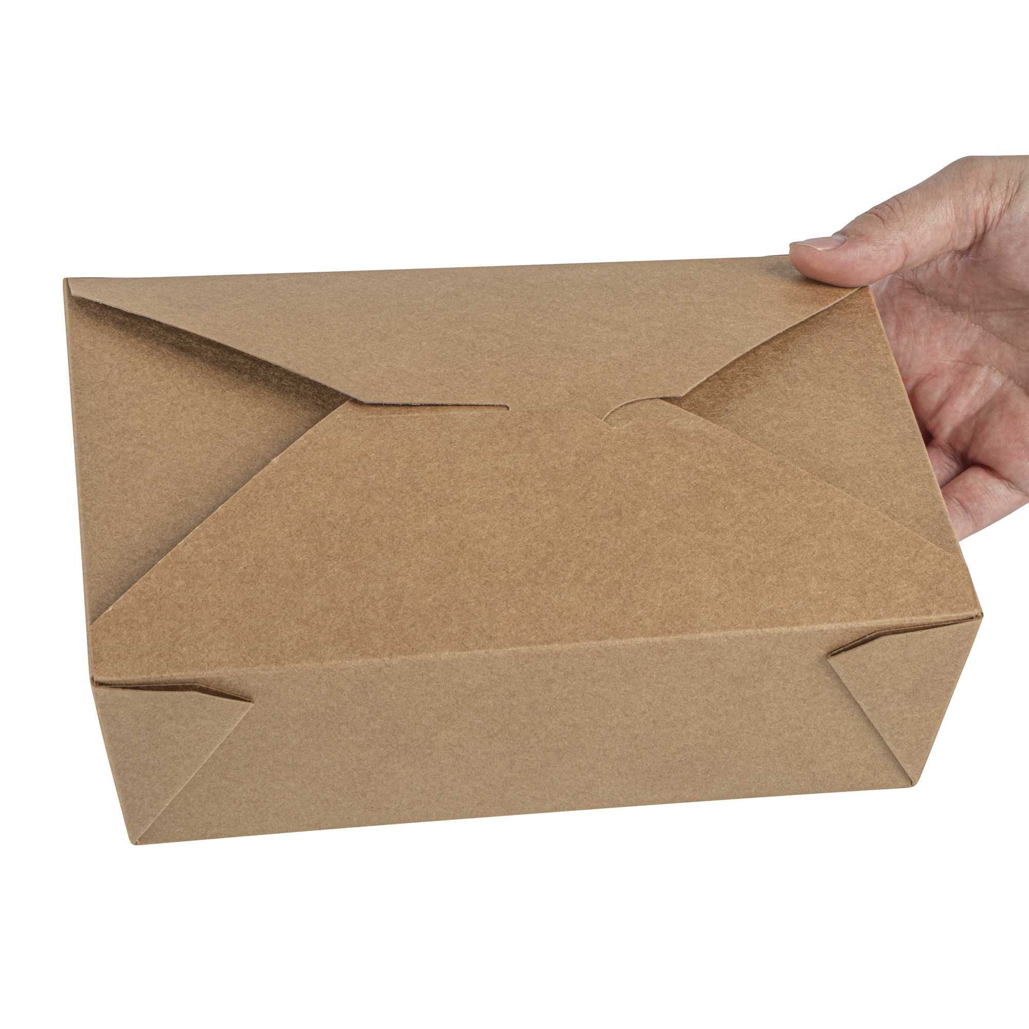 Packaging multiple take out orders is a breeze with our Bio Tek 71-ounce Rectangle Kraft Paper Microwavable #3 Bio Box Take Out Containers. Ideal for saucy foods, these to go boxes are greaseproof to prevent sauces from leaking through. These to go boxes are microwave-safe to reheat your carry out meals. Made from kraft paper, these take out food boxes are sturdy for containing a large number of egg rolls or a hefty amount of noodles. For securing meals during transport, these food containers have a tab lock closure. Featuring a natural brown finish, these to go containers instantly bring a sophisticated touch to take out orders. These Asian food boxes are recyclable to provide customers with an eco-friendly way to dispose of containers after use. Great for saving space in your storage area, these carry out containers are conveniently stackable. Measuring 8.5 inches long by 6.25 inches wide and 2.5 inches tall, these kraft food containers hold up to 71 ounces of your roasted potatoes or servings of broccoli. Sold in a 200 count box.