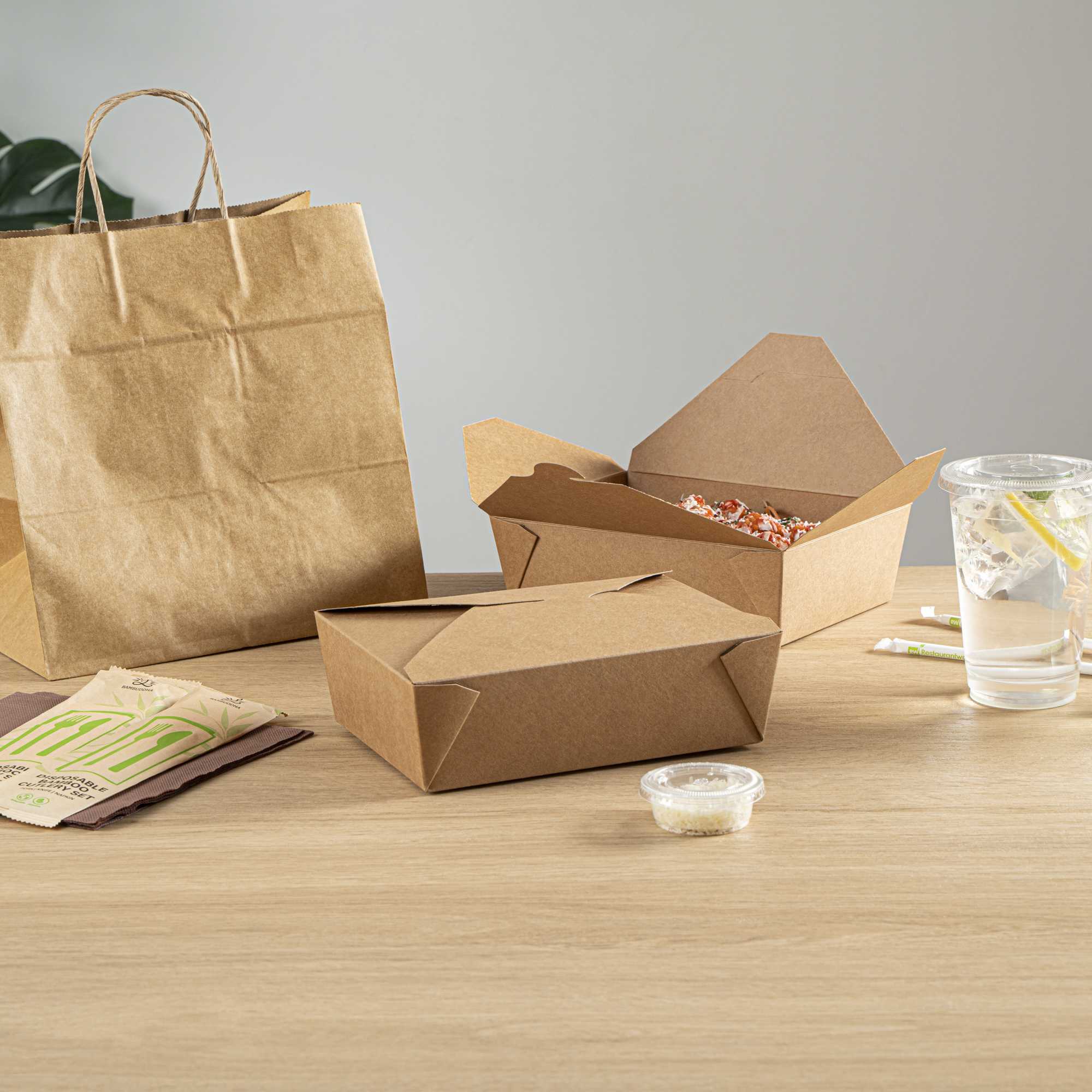 - Sturdy kraft paper material holds a variety of dishes without losing its shape