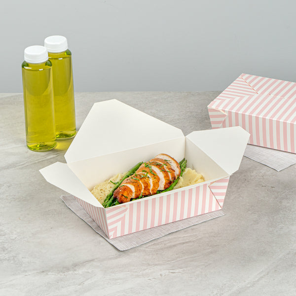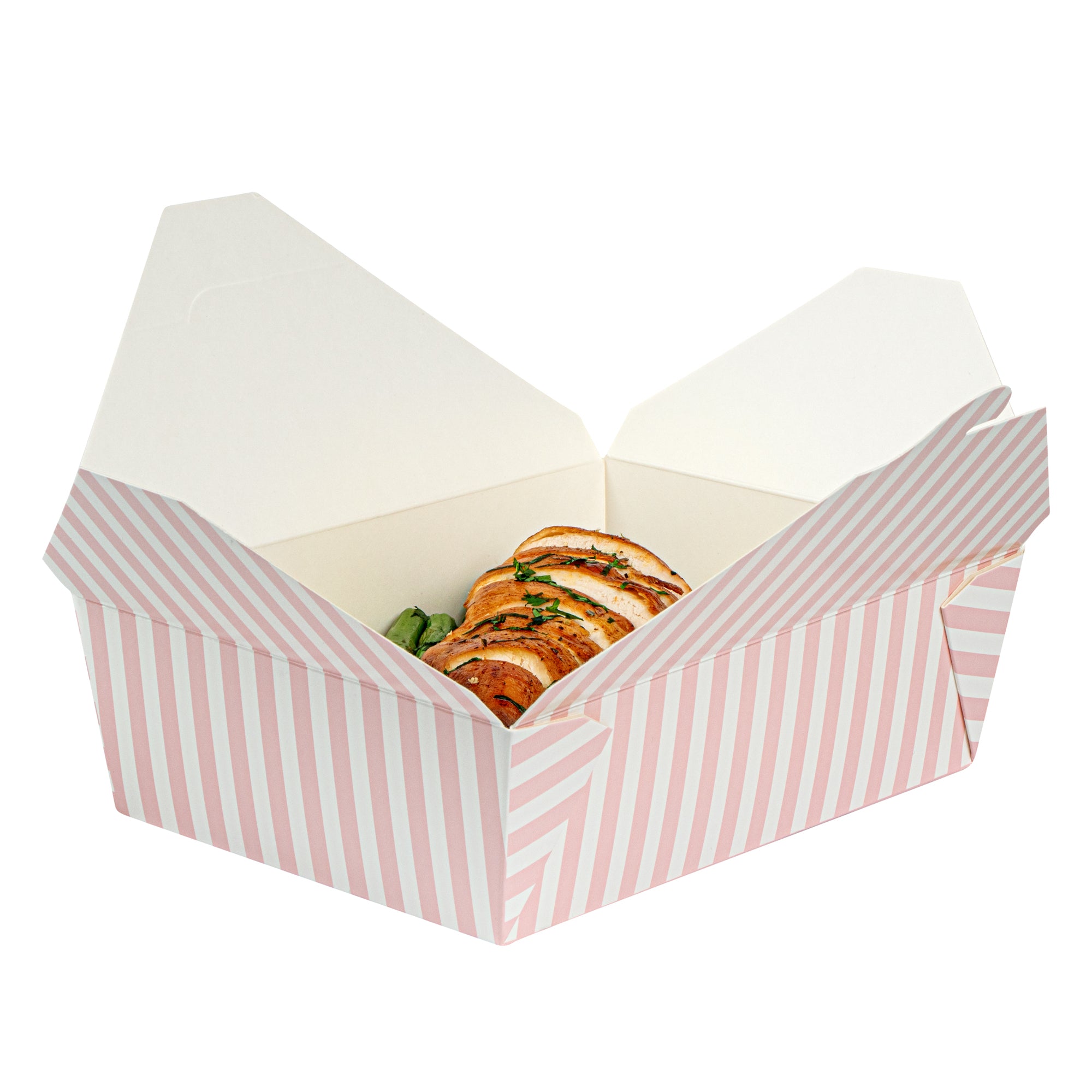 71 OZ PINK AND WHITE STRIPE PAPER #3 BIO BOX TAKE OUT CONTAINER