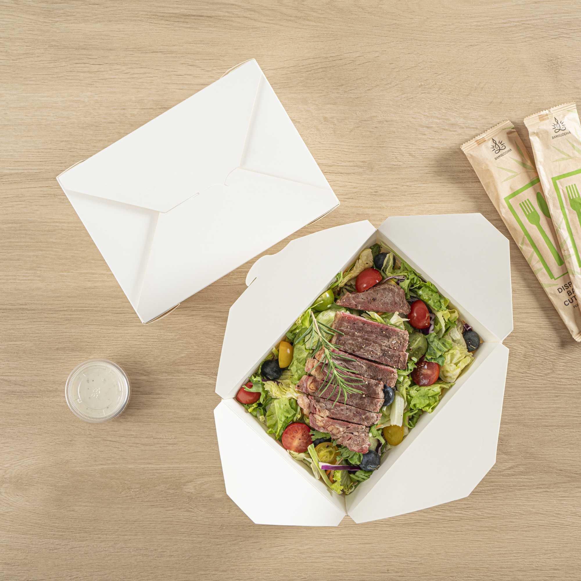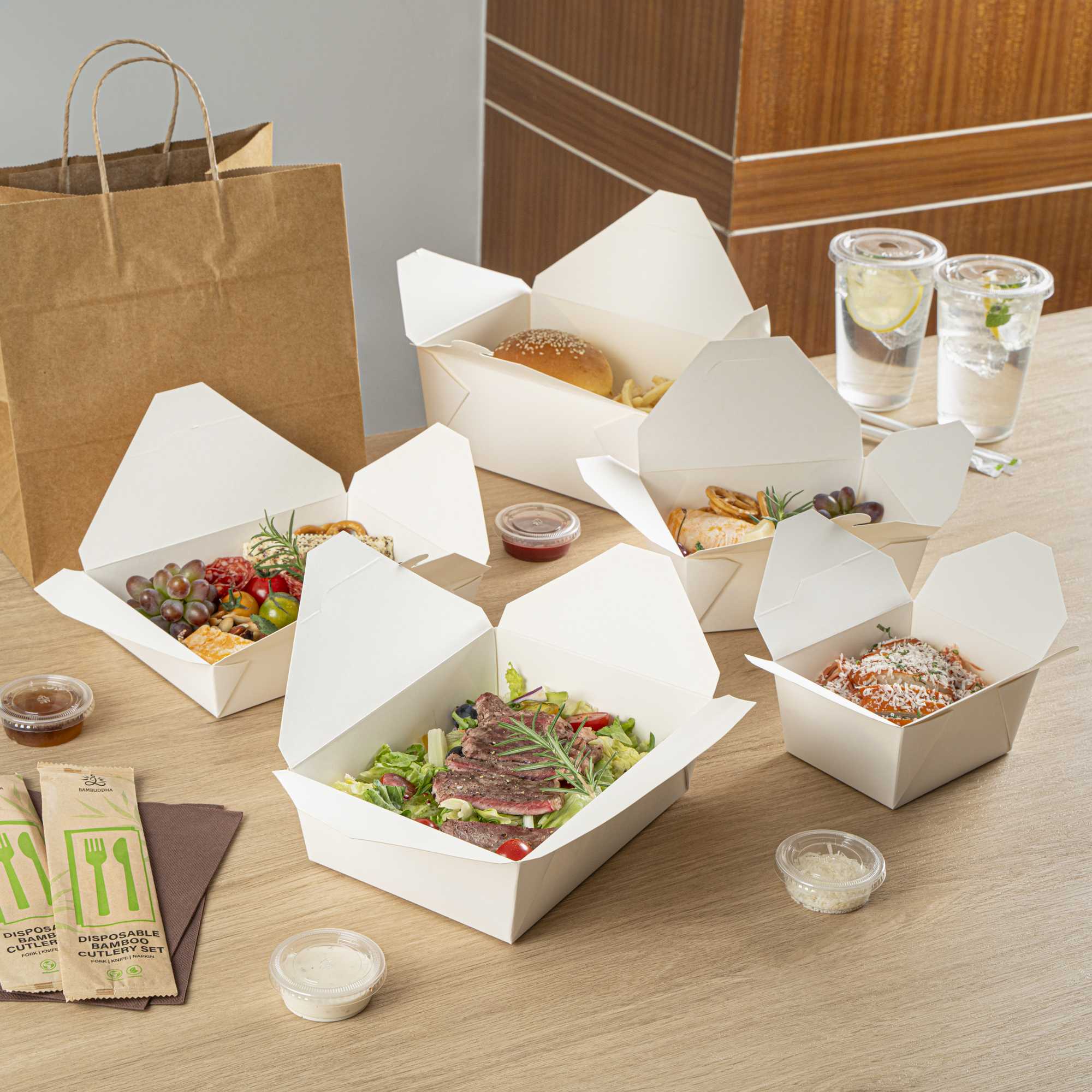 - Grease-resistant interior maintains packaging quality for takeout