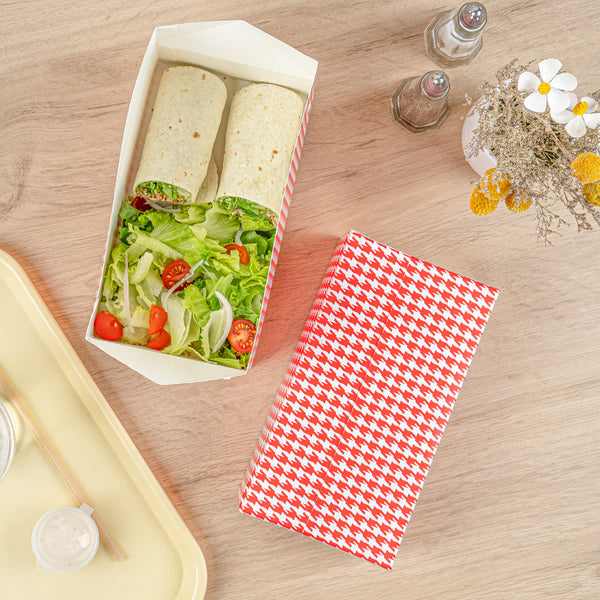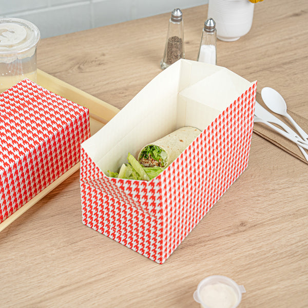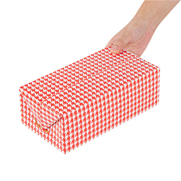 71 OZ RED HOUNDSTOOTH PAPER LUNCH / CHICKEN BOX - WITH FAST TOP