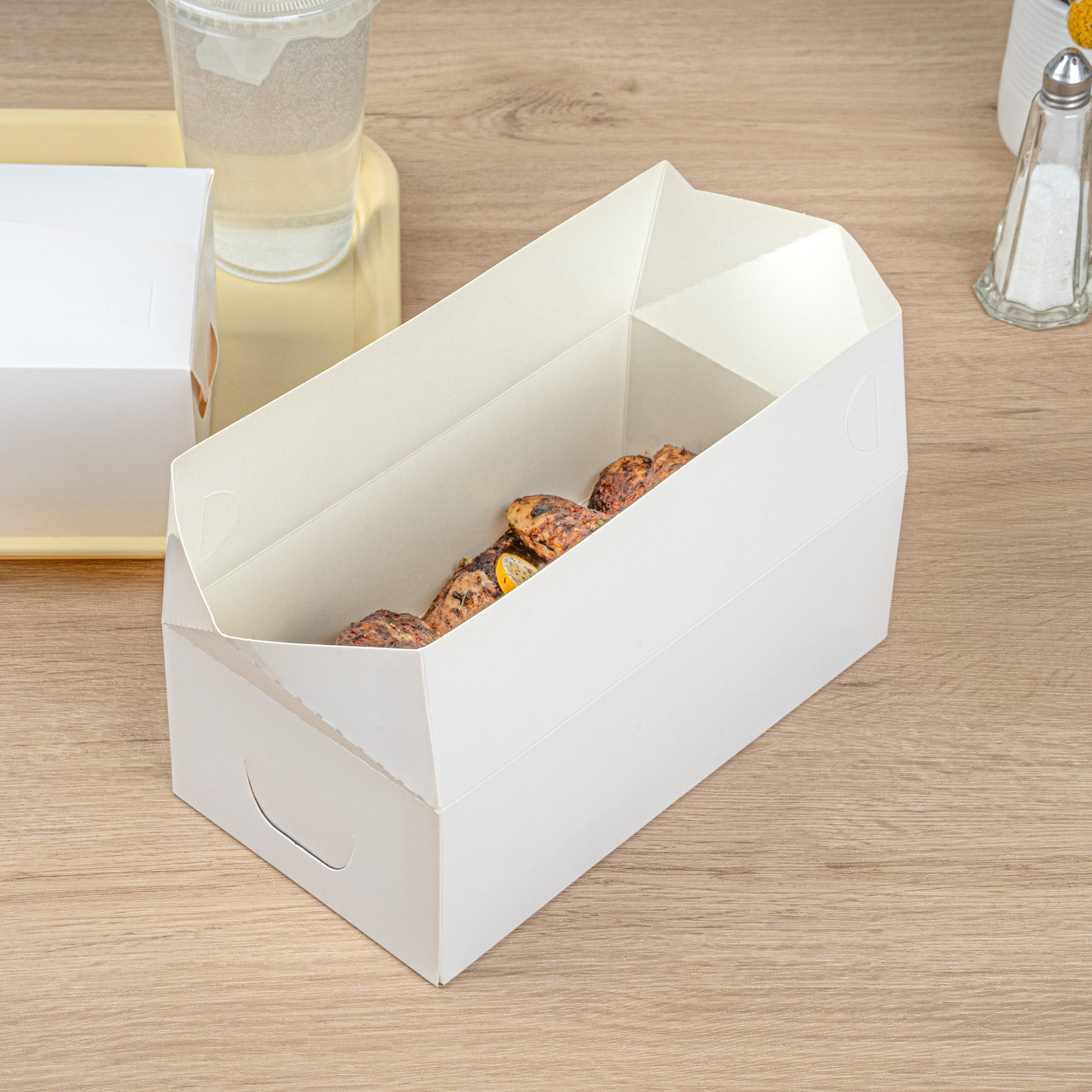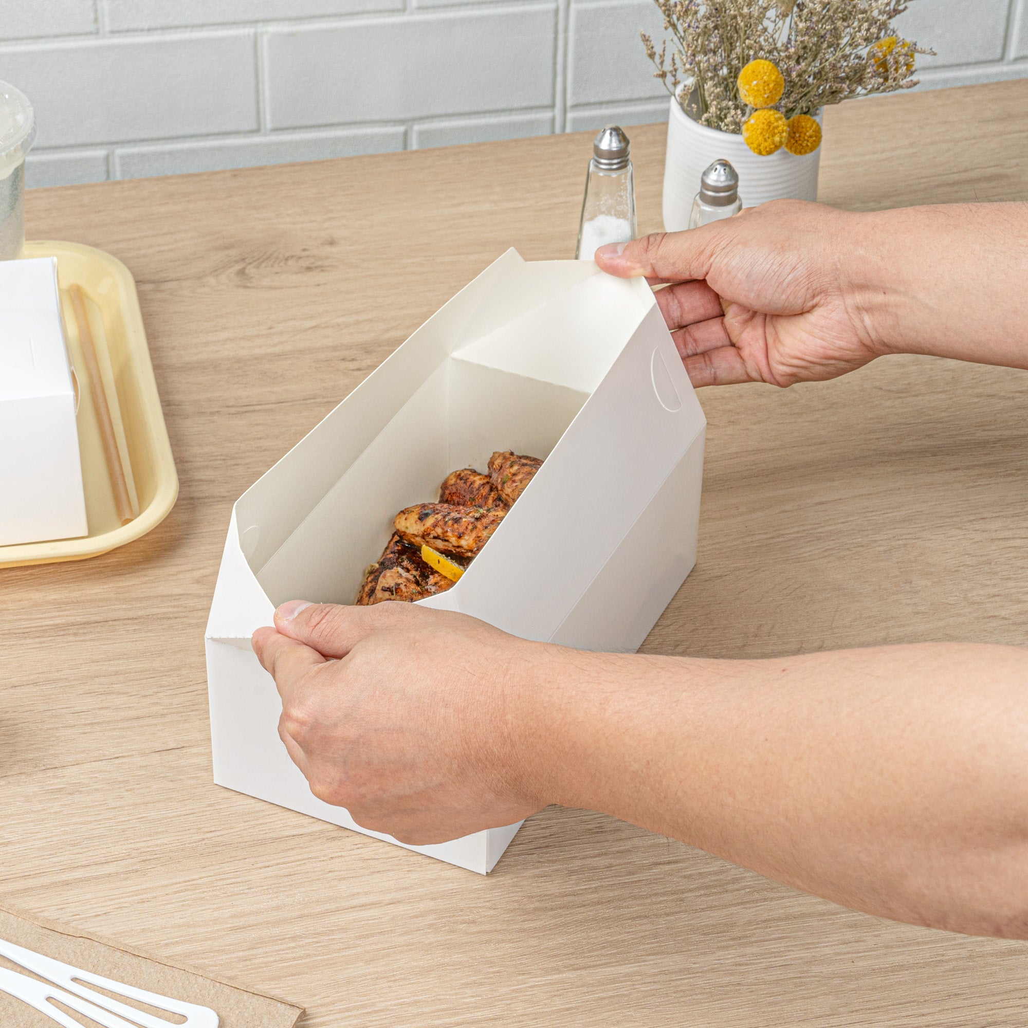 Ensure seamless meal deliveries with spill-proof packaging. The Bio Tek Spill-Resistant Paper Takeout Box offers a fast top closure that guarantees a secure seal, preventing leaks during transport and making it an ideal paper takeout box for busy restaurants and catering services. With a generous 71-ounce capacity, it accommodates large portions, perfect for food trucks and eateries serving hearty meals. Its greaseproof lining keeps dishes fresh by preventing oil seepage, enhancing the quality of your takeout offerings. Crafted from recyclable paper, this disposable lunch box supports eco-friendly waste management, aligning with sustainable practices in the foodservice industry. Measuring 8.75 inches by 5 inches by 3 inches, its white paper construction provides a clean and professional presentation, making a great impression on customers. Elevate your restaurant takeout container solutions with this efficient and stylish option. Each order includes 100 Bio Tek Spill-Resistant Paper Takeout Boxes.
