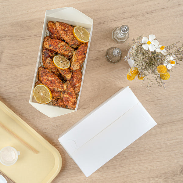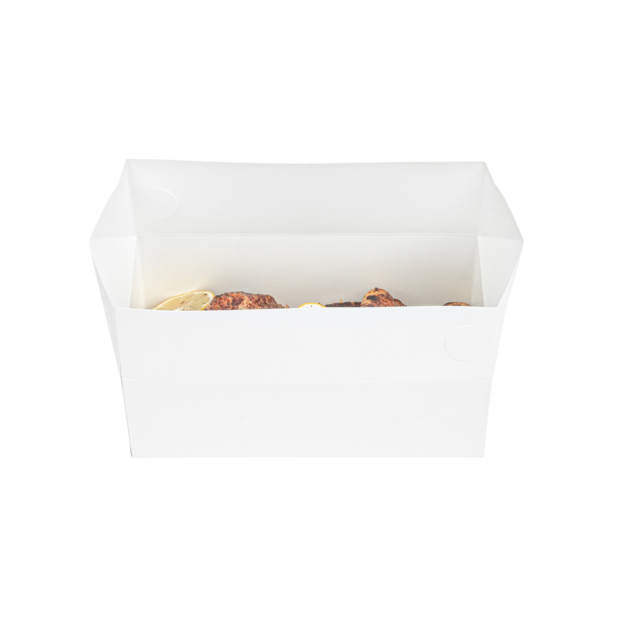 Ensure seamless meal deliveries with spill-proof packaging. The Bio Tek Spill-Resistant Paper Takeout Box offers a fast top closure that guarantees a secure seal, preventing leaks during transport and making it an ideal paper takeout box for busy restaurants and catering services. With a generous 71-ounce capacity, it accommodates large portions, perfect for food trucks and eateries serving hearty meals. Its greaseproof lining keeps dishes fresh by preventing oil seepage, enhancing the quality of your takeout offerings. Crafted from recyclable paper, this disposable lunch box supports eco-friendly waste management, aligning with sustainable practices in the foodservice industry. Measuring 8.75 inches by 5 inches by 3 inches, its white paper construction provides a clean and professional presentation, making a great impression on customers. Elevate your restaurant takeout container solutions with this efficient and stylish option. Each order includes 400 Bio Tek Spill-Resistant Paper Takeout Boxes.