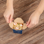 These takeaway boxes are made from thick paper and can easily hold hot and cold foods. Ideal for packing lunches for work!