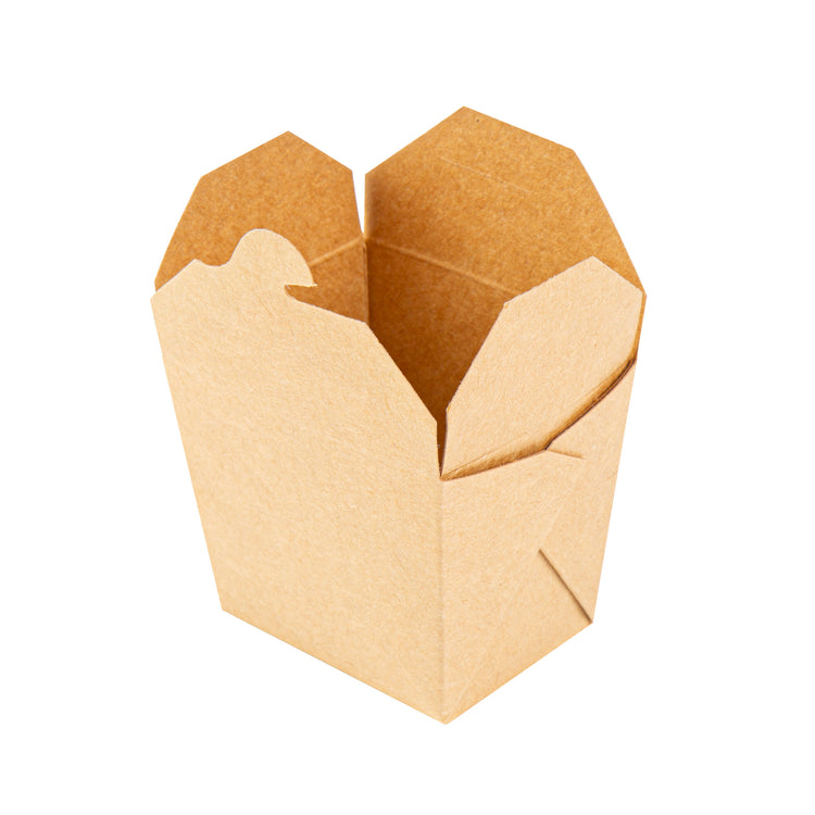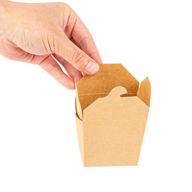 Give your take out orders a makeover with our Bio Tek 8-ounce Square Kraft Paper Microwavable Noodle Take Out Containers. These to go boxes are greaseproof, making them perfect for lo mein or fried noodles. For easily heating up dishes during events, these to go boxes are conveniently microwave-safe. The kraft paper construction of these carry out containers is naturally sturdy to hold servings of side dishes. Equipped with a tab lock closure, these food containers keep entrees safe and secure during transport. Featuring a natural brown finish, these Asian take out boxes can be written on to keep orders organized and avoid confusion. These paper take out boxes are recyclable for fast and nature-friendly cleanup after serving your customers. With a stackable design, these carry out boxes provide space-saving storage at your restaurant or catering service. Measuring 2.75 inches in length by 2.25 inches in width by 2.5 inches in height, these eco-friendly take out containers hold up to 8 ounces of vegetables or dumplings. Sold in a 200 count box.