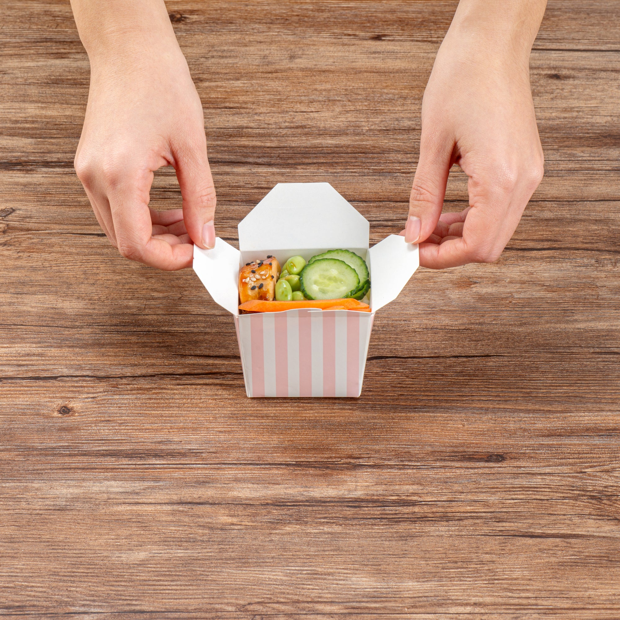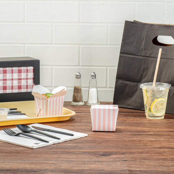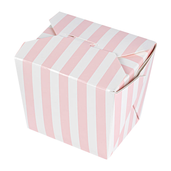 8 OZ SQUARE PINK AND WHITE STRIPE PAPER NOODLE TAKE OUT CONTAINER