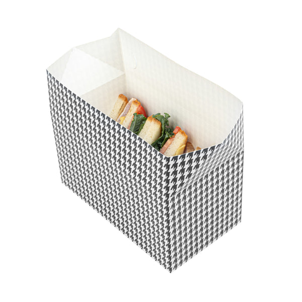 80 OZ BLACK HOUNDSTOOTH PAPER LUNCH / CHICKEN BOX - WITH FAST TOP