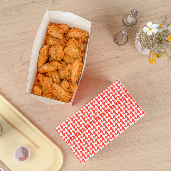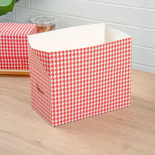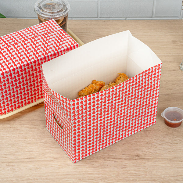 80 OZ RED HOUNDSTOOTH PAPER LUNCH / CHICKEN BOX - WITH FAST TOP