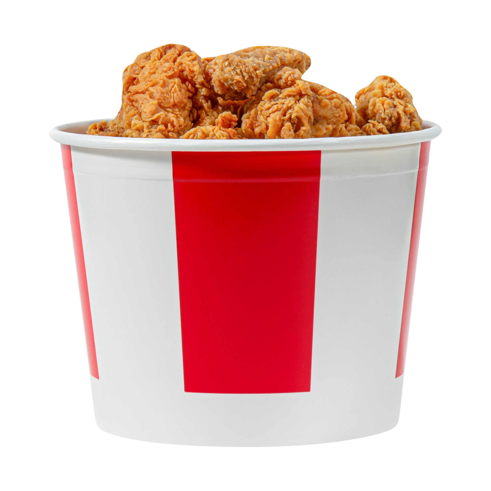 85 OZ RED AND WHITE PAPER CHICKEN BUCKET - WITH LID