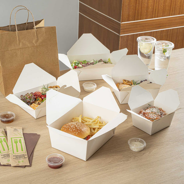 No matter the size of your dish, our disposable food boxes are available in different capacities to accommodate any meal. Choose from our soup, noodle, salad, or rectangle containers to easily pack and take food anywhere.