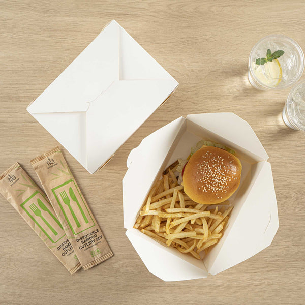 Our food containers are made from recyclable paper to easily dispose of boxes in a nature-friendly way. Don’t worry about washing dirty containers!