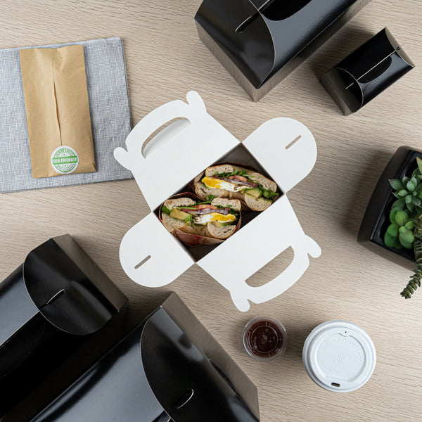 Ensure freshness and easy transport with greaseproof packaging. Bio Tek Greaseproof Gable Boxes boast a greaseproof lining that prevents oils from seeping through, making them ideal for maintaining the quality of baked goods. These black kraft gable boxes feature a built-in handle, allowing you to comfortably carry orders while presenting a sleek appearance. With their freezer-safe design, you can store treats for extended freshness, ensuring your products are ready for any event. Ideal as party favor boxes, their dimensions of 6 inches in length, 3.5 inches in width, and 3.5 inches in height offer ample space for a variety of items. Crafted from sturdy paper, these small gift boxes are both recyclable and versatile, suitable for both hot and cold foods. Optimize your packaging solutions today with these eco-friendly black kraft gable boxes. Each order includes 25 Bio Tek Greaseproof Gable Boxes.