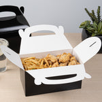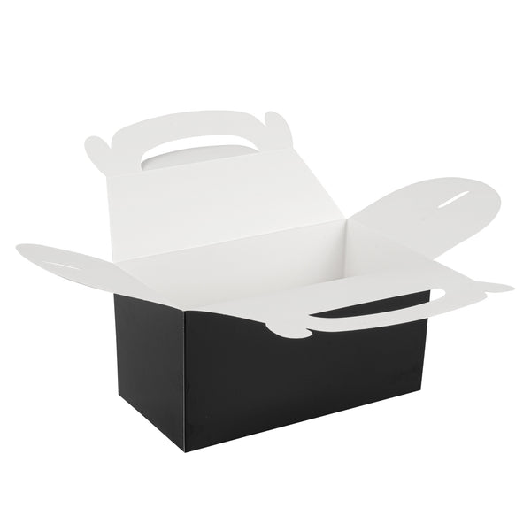 Ensure a pristine presentation with greaseproof packaging. Bio Tek Greaseproof Kraft Gift Boxes, crafted from sturdy paper, feature a greaseproof lining that prevents oils from seeping through, preserving the elegant look of your gourmet gifts. Their built-in handle enables easy and comfortable carrying of these sophisticated kraft gift boxes, making them perfect for any catering service or bakery. With a convenient freezer-safe design, these cardboard favor boxes allow you to store treats, maintaining their freshness for extended periods. Measuring 9.5 inches in length, 5 inches in width, and 5 inches in height, these black gable boxes offer ample space for a variety of goodies. Enhance your foodservice operations by choosing packaging that combines functionality with style. Each order includes 100 Bio Tek Greaseproof Kraft Gift Boxes.