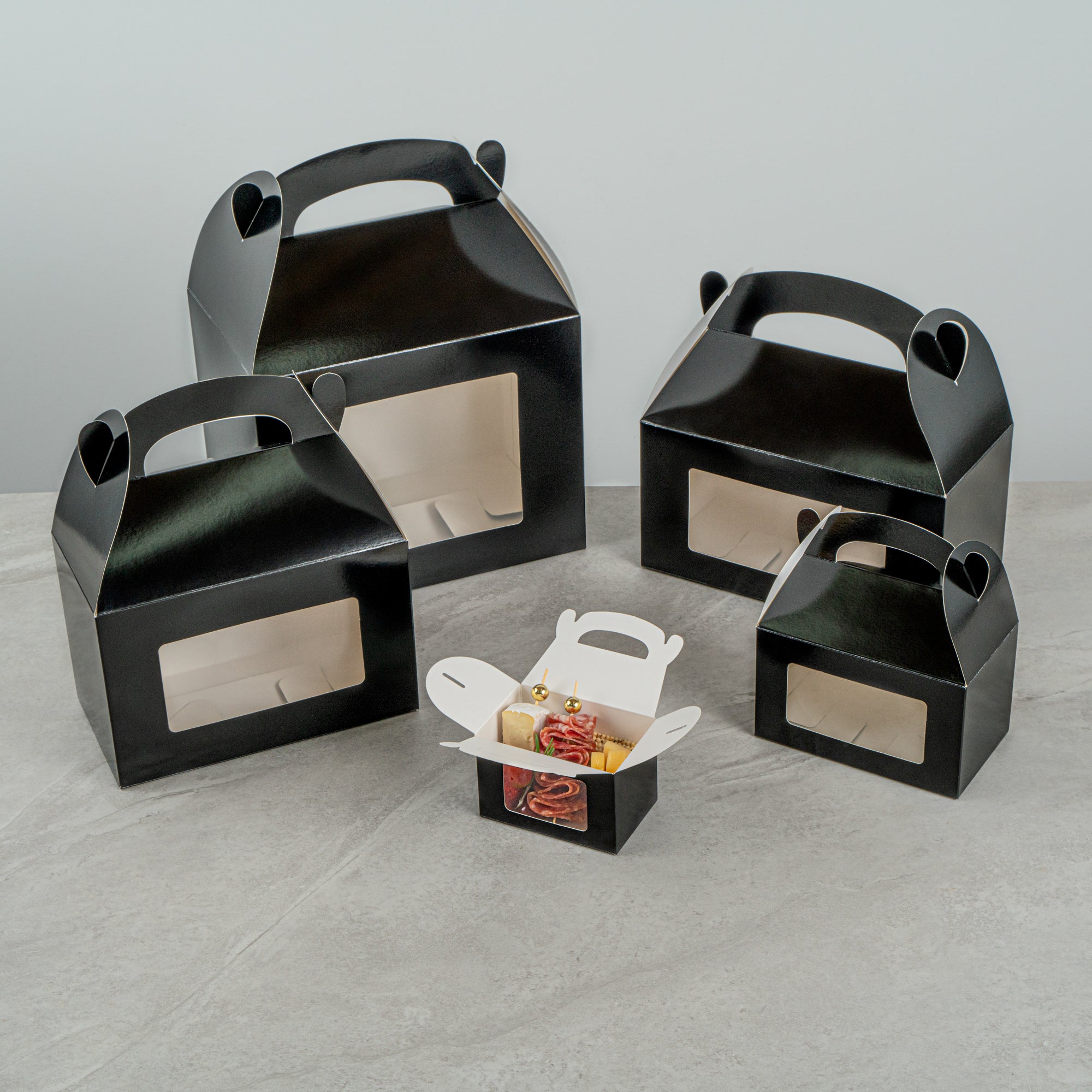 BLACK PAPER GABLE BOX / TAKE OUT CONTAINER - GREASEPROOF, WITH WINDOW