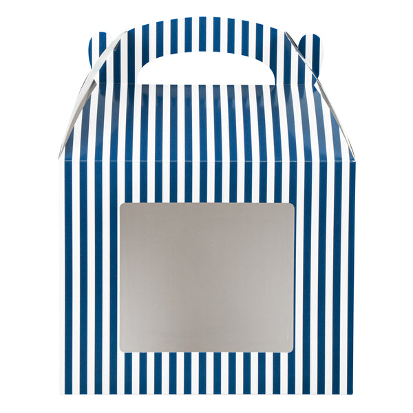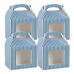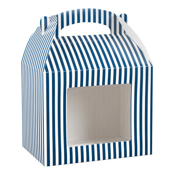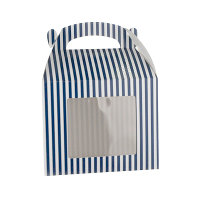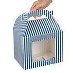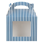 BLUE AND WHITE STRIPE PAPER GABLE BOX/TAKE OUT CONTAINER - WITH WINDOW