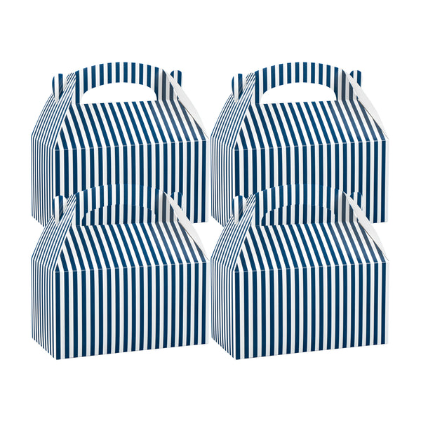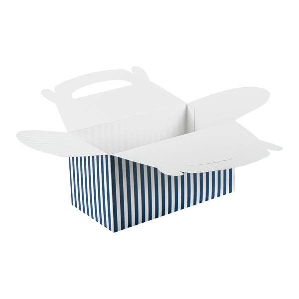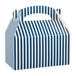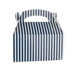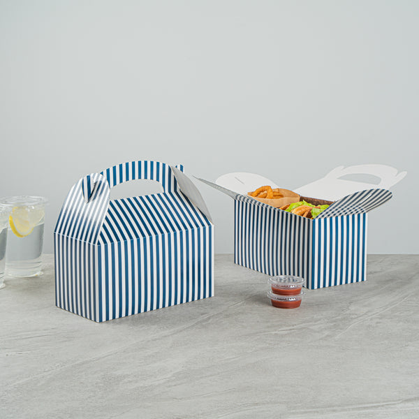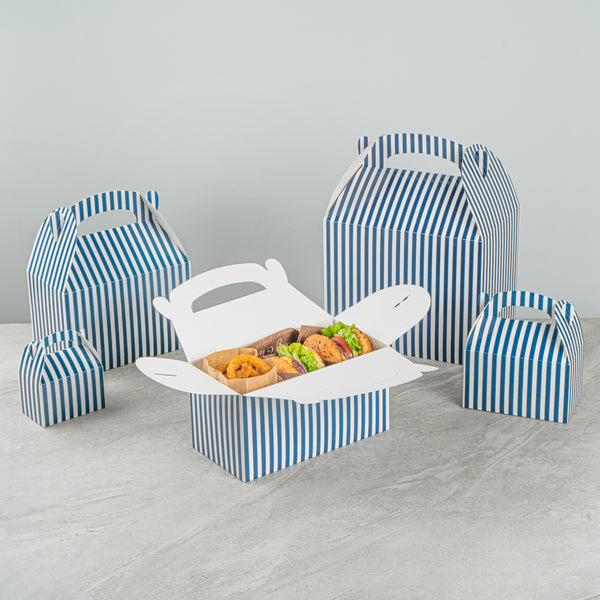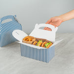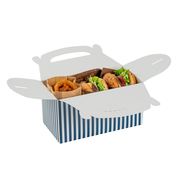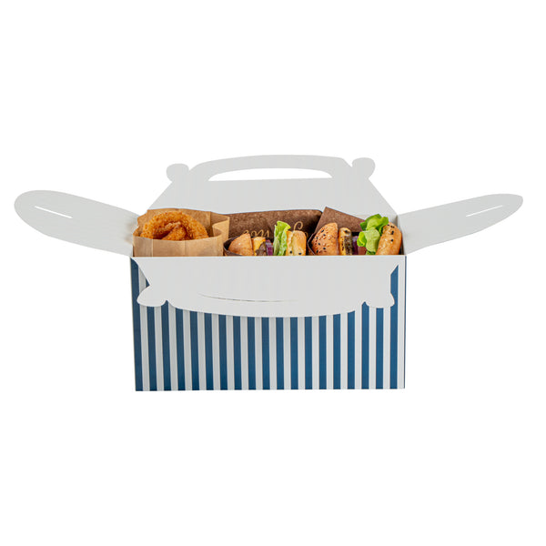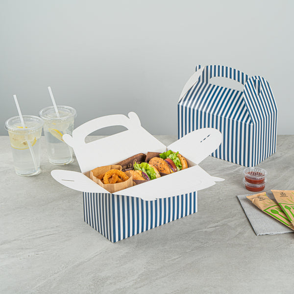 BLUE & WHITE STRIPE PAPER GABLE BOX / TAKE OUT CONTAINER - COMPOSTABLE