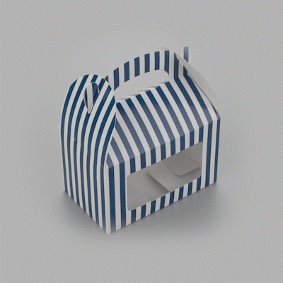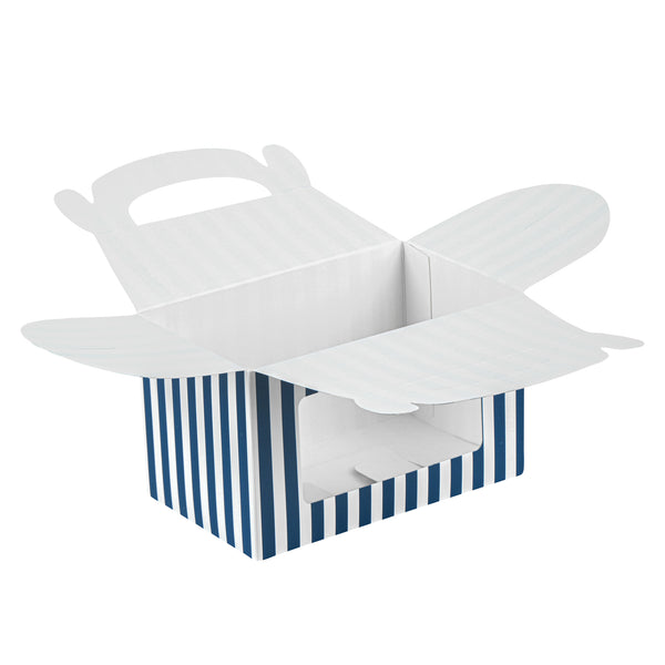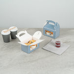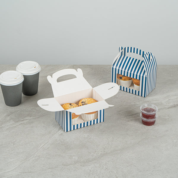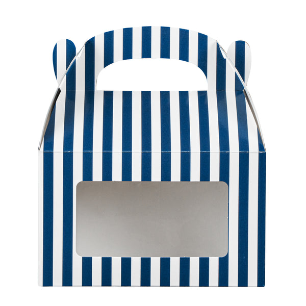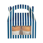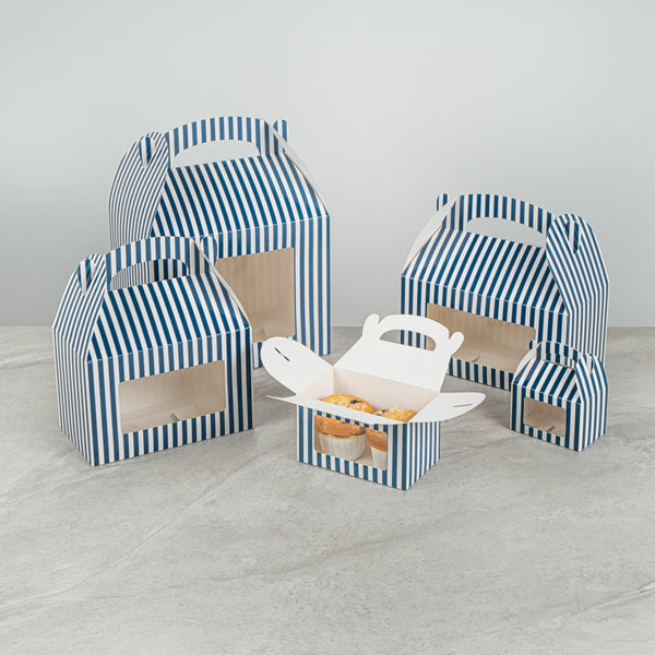 BLUE & WHITE STRIPE PAPER GABLE BOX / TAKE OUT CONTAINER - WITH WINDOW
