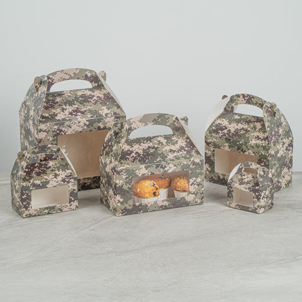 CAMOUFLAGE PAPER GABLE BOX / TAKE OUT CONTAINER - WITH WINDOW