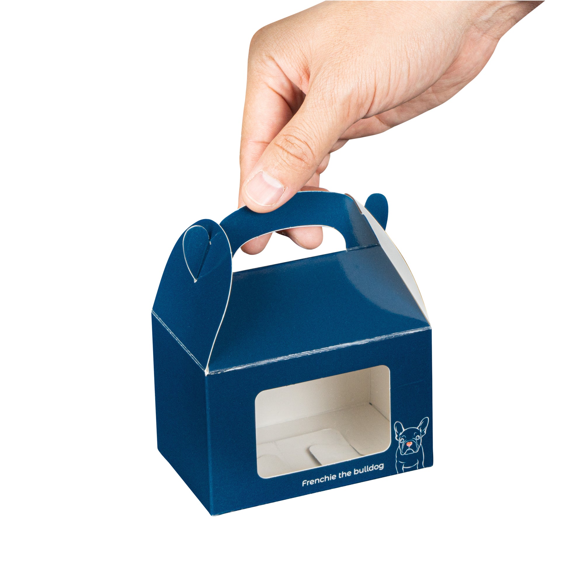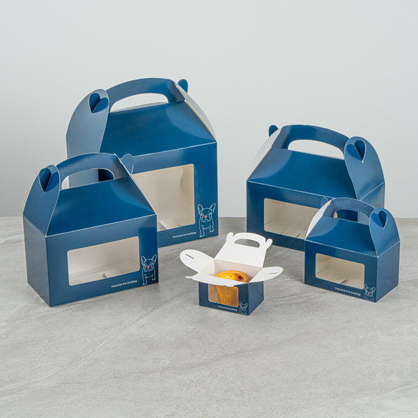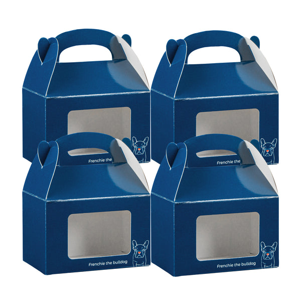 Entice customers with a tempting preview of your baked delights. The Bio Tek Windowed Gable Gift Box features an integrated plastic window that showcases your bakery items enticingly, making it an ideal choice for any gable gift box requirement. Constructed from sturdy paper, this blue cardboard gift box ensures a secure and appealing presentation. Its built-in handle allows you to carry orders comfortably, enhancing your foodservice efficiency when using it as a party favor box. With dimensions of 4 inches in length, 2.5 inches in width, and 2.5 inches in height, this freezer-safe design is perfect for storing treats efficiently without compromising on freshness. Recyclable and suitable for both cold and hot food, it is a sustainably friendly choice that meets diverse needs. Elevate your packaging solutions today with this stylish and functional box. Each order includes 25 Bio Tek Windowed Gable Gift Boxes.