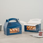 Showcase your creations effortlessly with these Bio Tek Frenchie Paper Gable Boxes / Take Out Containers. Featuring a 9.5-inch length, these gable gift boxes come with an integrated plastic window that allows customers to quickly glance at your delicious treats, enhancing impulse purchases and satisfaction. The built-in handle not only provides a secure grip but also makes it easy for your staff to carry out deliveries, boosting operational efficiency. Designed to be freezer-safe, these kraft gift boxes are perfect for storing desserts, ensuring longevity and freshness without compromising quality. Made from reliable paper material, they are both cold and hot food-friendly, meeting versatile foodservice needs. Measuring 9.5 inches in length and 5 inches in height, these window gable boxes are perfect for a variety of baked goods or party favors. Sold in a 25 count box.