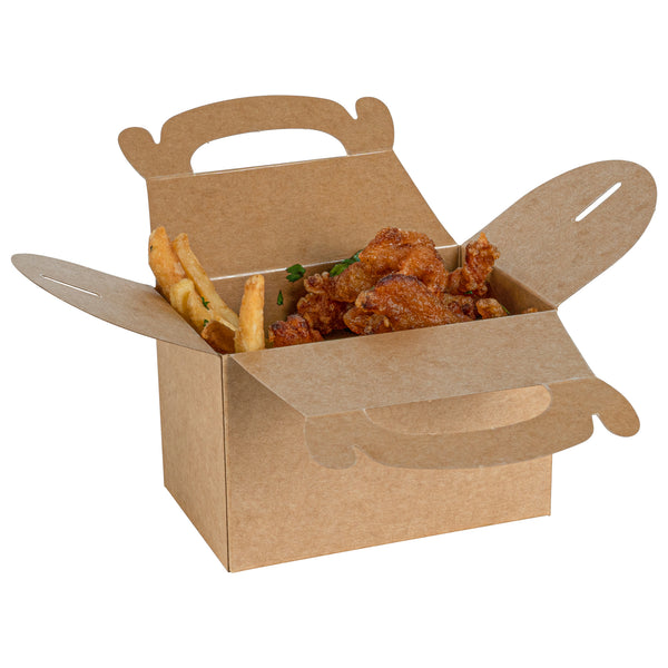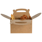 Transport meals with confidence using greaseproof packaging. Bio Tek Greaseproof Kraft Paper Gable Boxes feature a 4-inch by 2.5-inch by 2.5-inch design that prevents oil stains, ensuring your services remain spotless and appealing. These kraft paper gable boxes come with a built-in handle that makes it easy to carry orders comfortably, optimizing efficiency for busy foodservice environments. Their freezer-safe construction preserves the freshness of stored treats, making them ideal for pre-prepared meals. Made from recyclable paper, these small kraft boxes cater to environmentally conscious establishments while maintaining robustness for hot or cold foods. Enhance your service with cardboard favor boxes that not only protect but also present your culinary creations with style. Each order includes 100 Bio Tek Greaseproof Kraft Paper Gable Boxes.