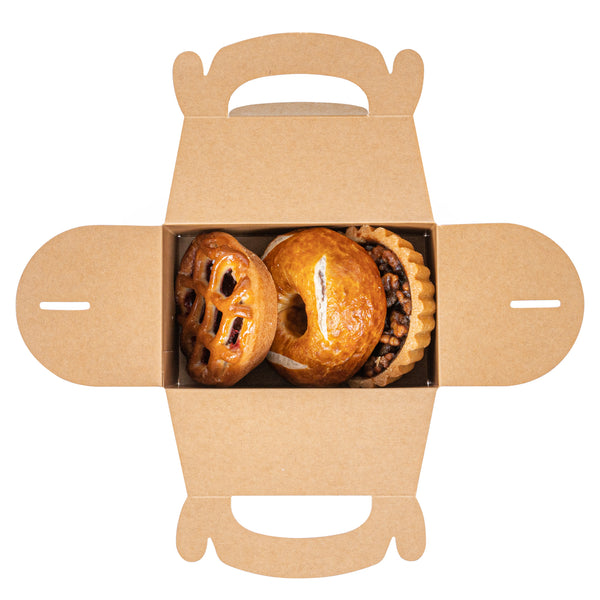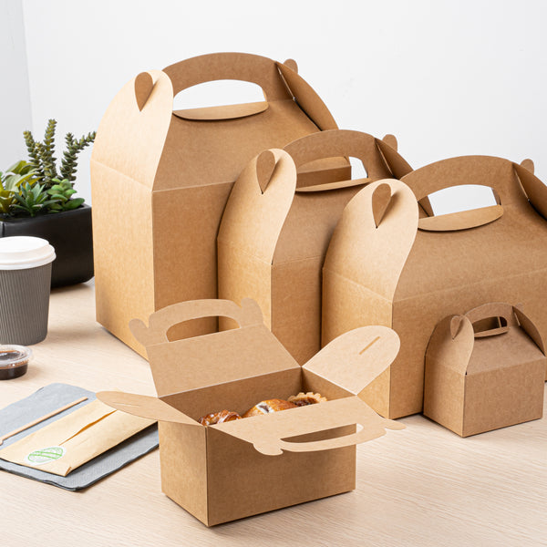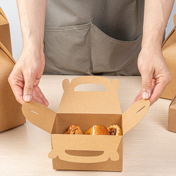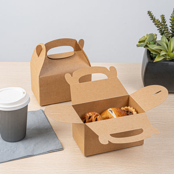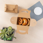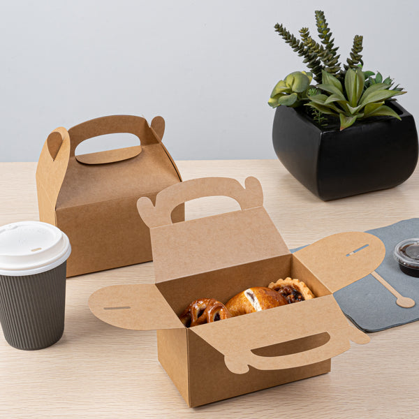 Secure your food orders with versatile kraft gable boxes. Bio Tek Greaseproof Kraft Gable Boxes provide a greaseproof lining that prevents messy oil seepage, ensuring your fried foods stay fresh and clean. The built-in handle ensures easy order transport, allowing staff and customers alike to carry meals comfortably and effortlessly, making these kraft gift boxes a practical choice for catering events or takeout services. Designed with a freezer-safe feature, these boxes are perfect for storing frozen treats without compromising the integrity of your delicious offerings, ideal for bakeries and dessert shops utilizing cardboard favor boxes for their frozen goods. Constructed from recyclable kraft paper, these 6-inch by 3.5-inch by 3.5-inch boxes minimize environmental impact while maximizing operational efficiency for foodservice professionals. Enhance your food packaging solutions today by choosing these reliable kraft gable boxes. Each order includes 25 Bio Tek Greaseproof Kraft Gable Boxes.
