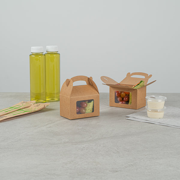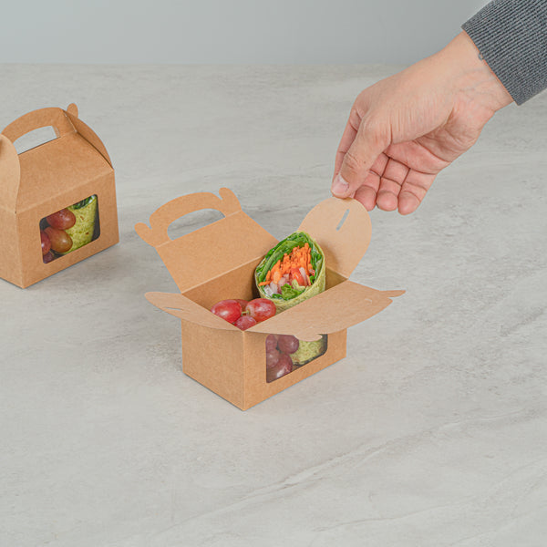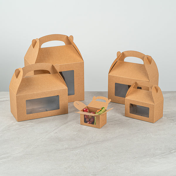 KRAFT PAPER GABLE BOX / TAKE OUT CONTAINER - GREASEPROOF, WITH WINDOW