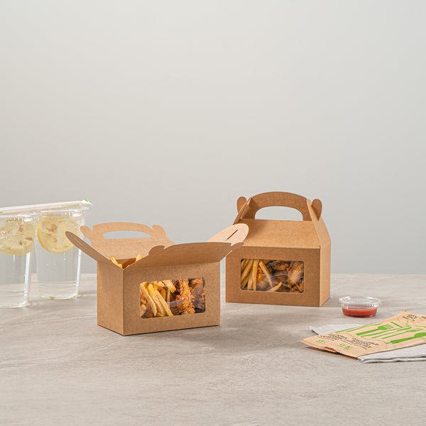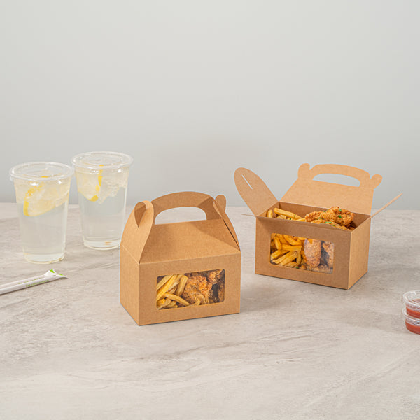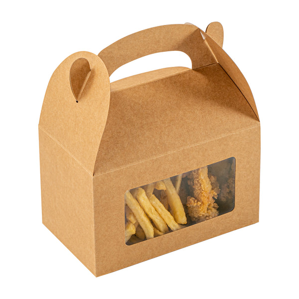 KRAFT PAPER GABLE BOX / TAKE OUT CONTAINER - GREASEPROOF, WITH WINDOW