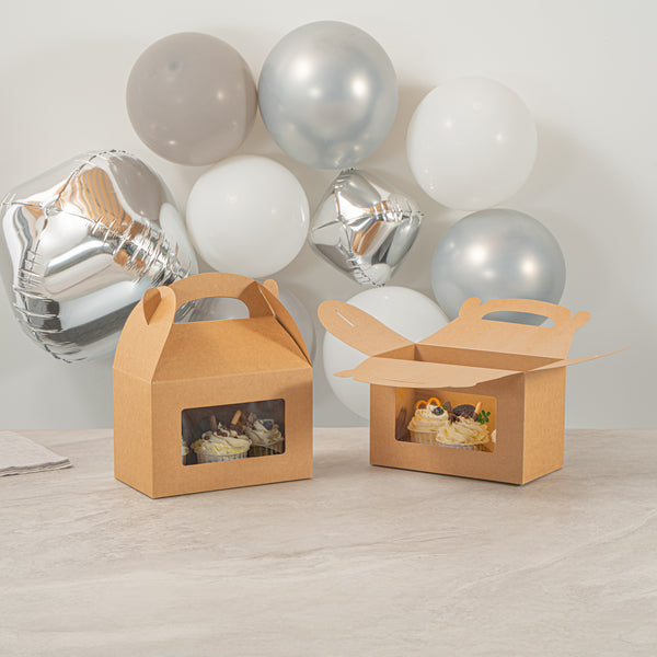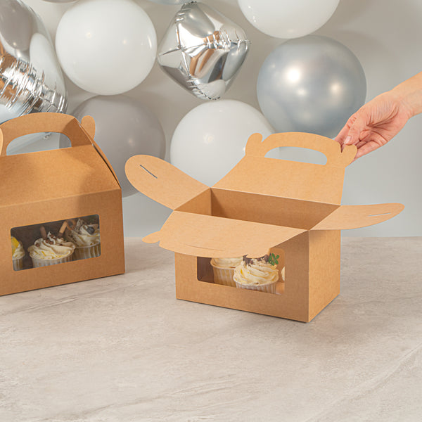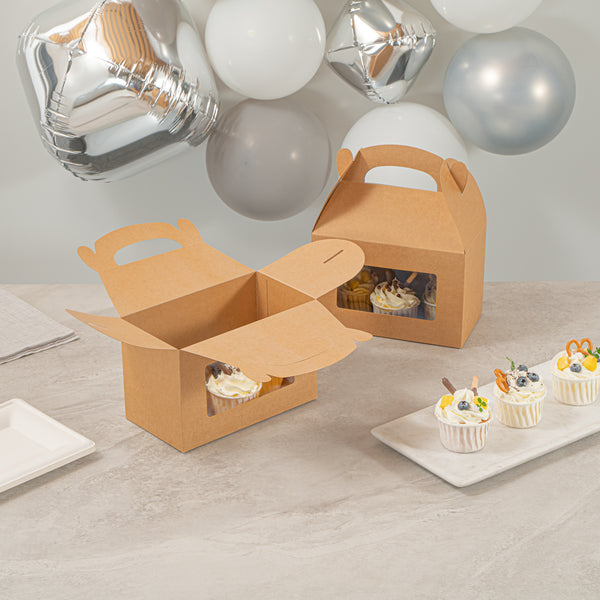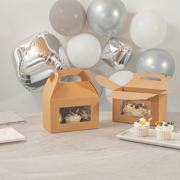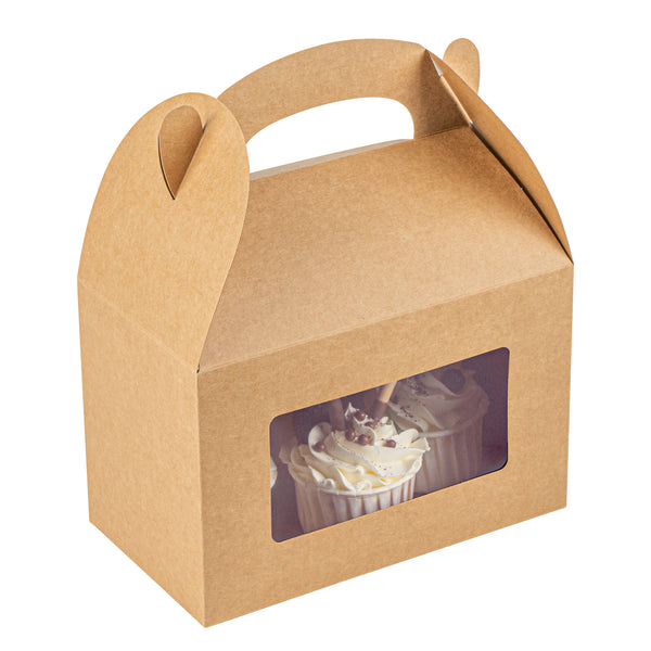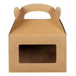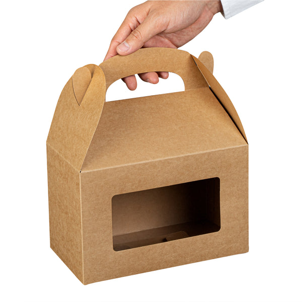 Keep your food orders pristine with greaseproof gable gift boxes. Bio Tek Kraft Paper Gable Boxes / Take Out Containers feature a greaseproof lining that keeps packaging stain-free and clean, ensuring a polished presentation for your take out and delivery services. The integrated plastic window beautifully showcases the contents, enticing customers to make a purchase and boosting sales in your bakery or cafe. With the built-in handle, these kraft paper boxes allow you to carry orders comfortably, enhancing the efficiency and professionalism of your service. Crafted from sturdy paper, these window gift boxes are recyclable, making them an eco-friendly choice for environmentally-conscious businesses. Measuring 8.5 inches in length, 4.75 inches in width, and 5.5 inches in height, they are perfect for a variety of food items. Elevate your packaging with these practical and attractive boxes. Sold in a 25 count box.