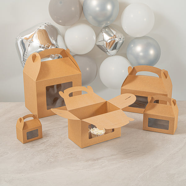 KRAFT PAPER GABLE BOX / TAKE OUT CONTAINER - GREASEPROOF, WITH WINDOW