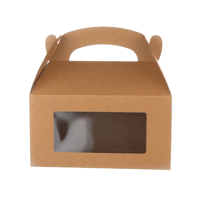KRAFT PAPER GABLE BOX / TAKE OUT CONTAINER - GREASEPROOF, WITH WINDOW