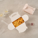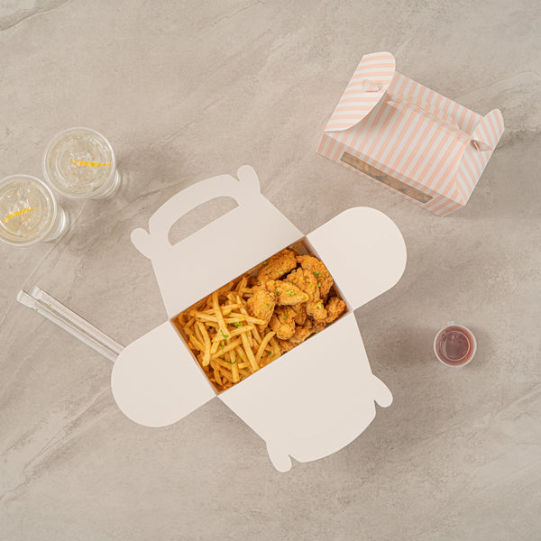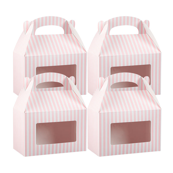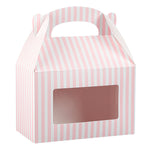 Entice customers and boost bakery sales with eye-catching packaging. Bio Tek Pink and White Stripe Paper Gable Boxes / Take Out Containers feature an integrated plastic window that provides an enticing sneak peek of your delicious treats, enhancing impulse snack purchases. These window display boxes include a built-in handle, making it easy to carry bulk orders comfortably and efficiently. With a freezer-safe design, these wedding favor boxes preserve baked goods longer, ensuring your pastries remain fresh and ready for any event. Crafted from sturdy paper, these versatile boxes are 8.5 inches in length, 4.75 inches in width, and 5.5 inches in height, providing ample space for showcasing your creations while offering recyclability for eco-conscious businesses. Elevate your presentation and streamline your operations with these innovative packaging solutions. Sold in a 25 count box.