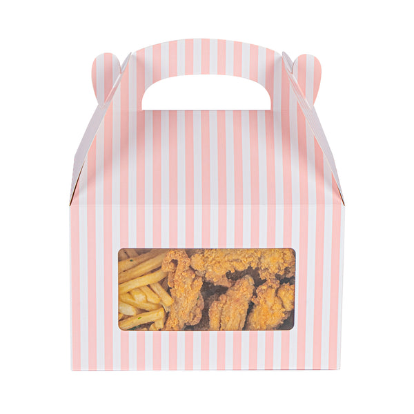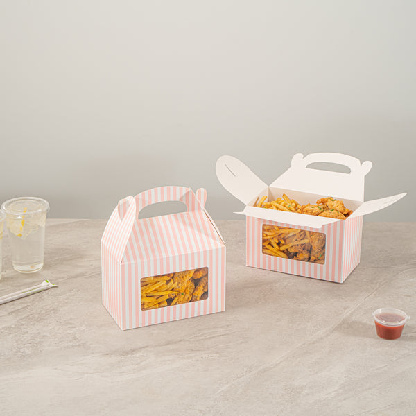 PINK AND WHITE STRIPE GABLE BOX / TAKE OUT CONTAINER - WITH WINDOW