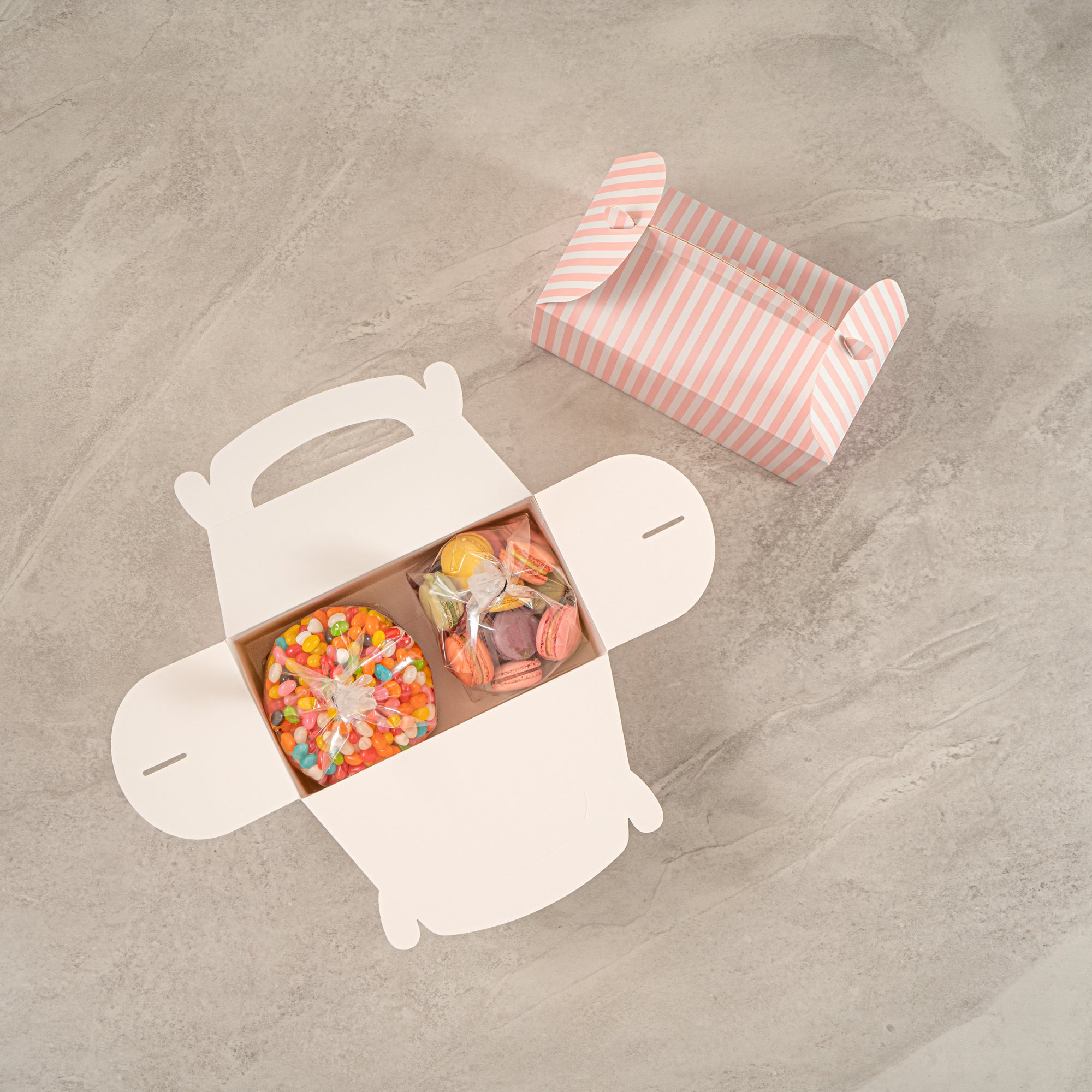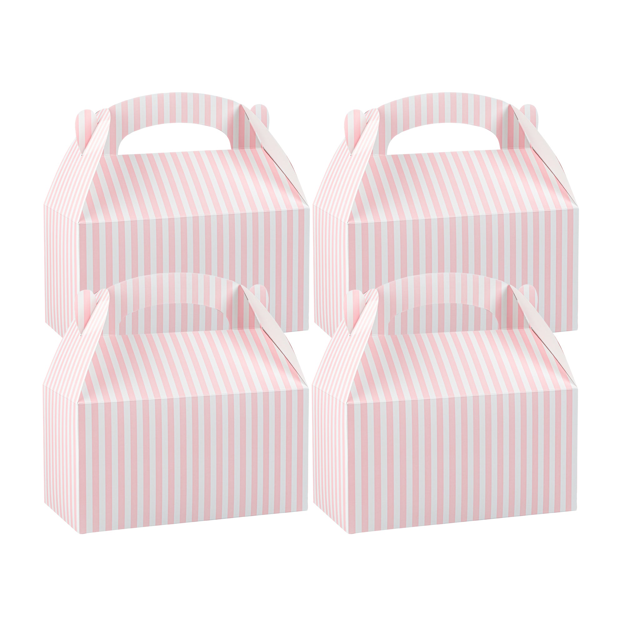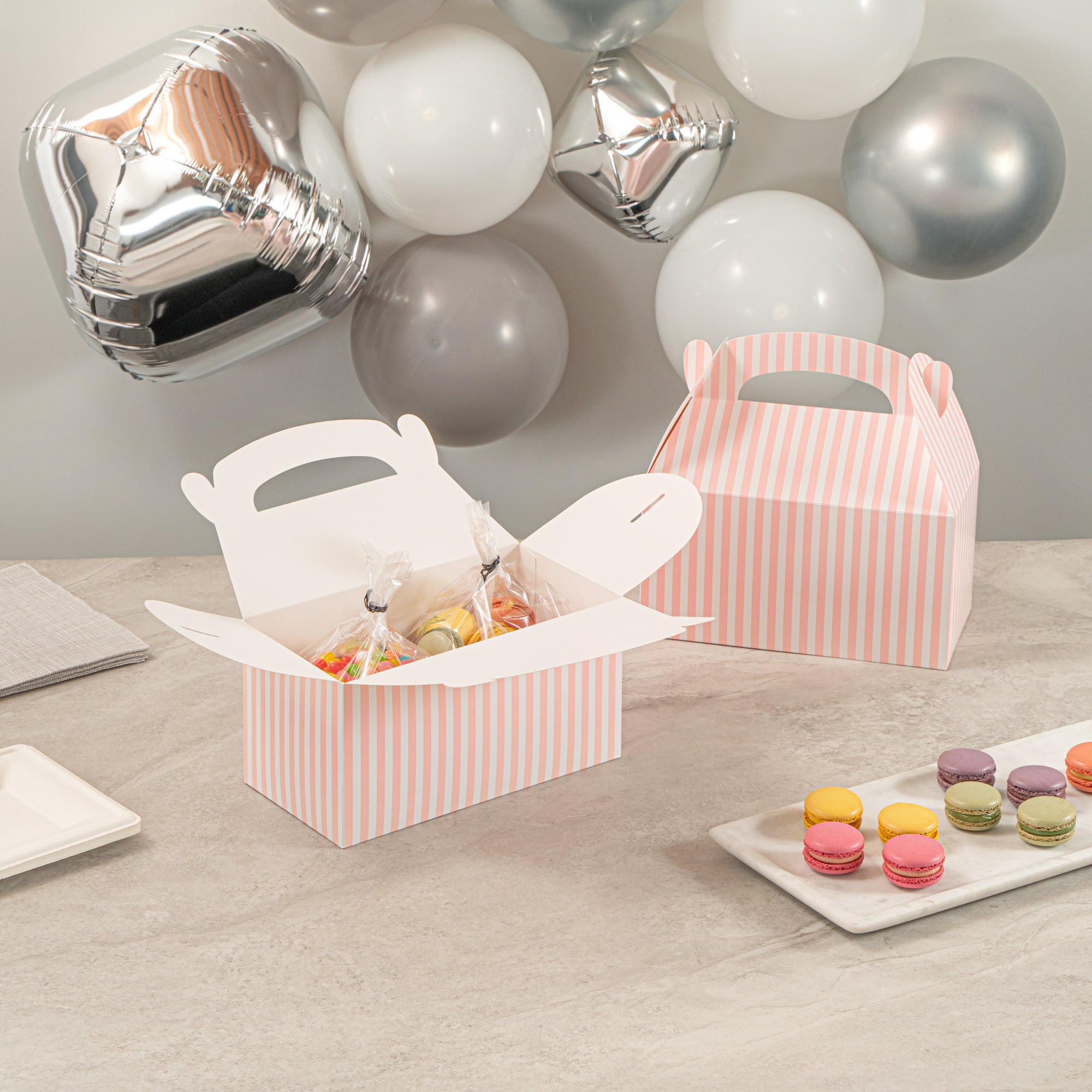 Enhance your foodservice presentation with charming, portable packaging. Bio Tek Freezer-Safe Gable Gift Boxes combine the elegance of pink and white stripes with the practicality of a freezer-safe design, allowing you to store frozen treats without compromising style. These gable gift boxes feature built-in handles for comfortable transport, making it easy to carry orders securely and conveniently. Crafted from paper, these party favor boxes support sustainability initiatives while providing a cold food-friendly and hot food-friendly option for various culinary creations. With dimensions of 9.5 inches in length, 5 inches in width, and 5 inches in height, these kraft boxes offer ample space for an array of items, ensuring versatility in presentation. Elevate your packaging game and impress your guests with these sustainably conscious solutions. Each order includes 25 Bio Tek Freezer-Safe Gable Gift Boxes.