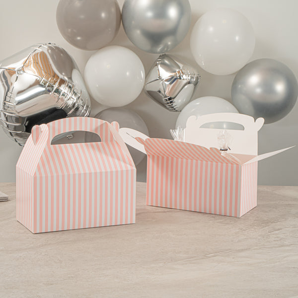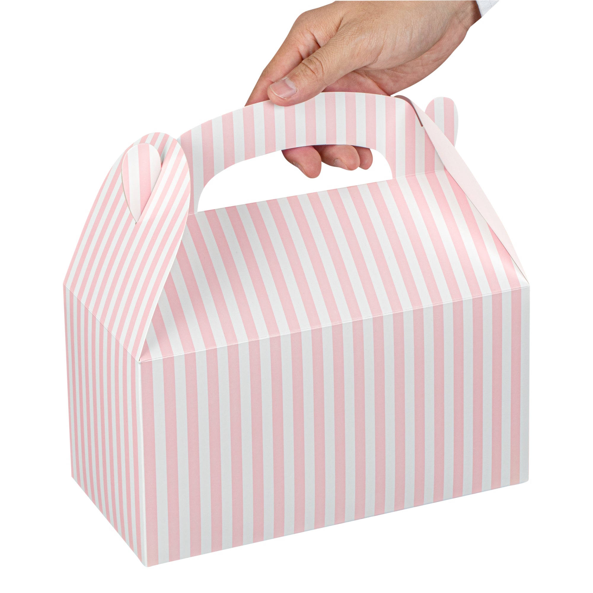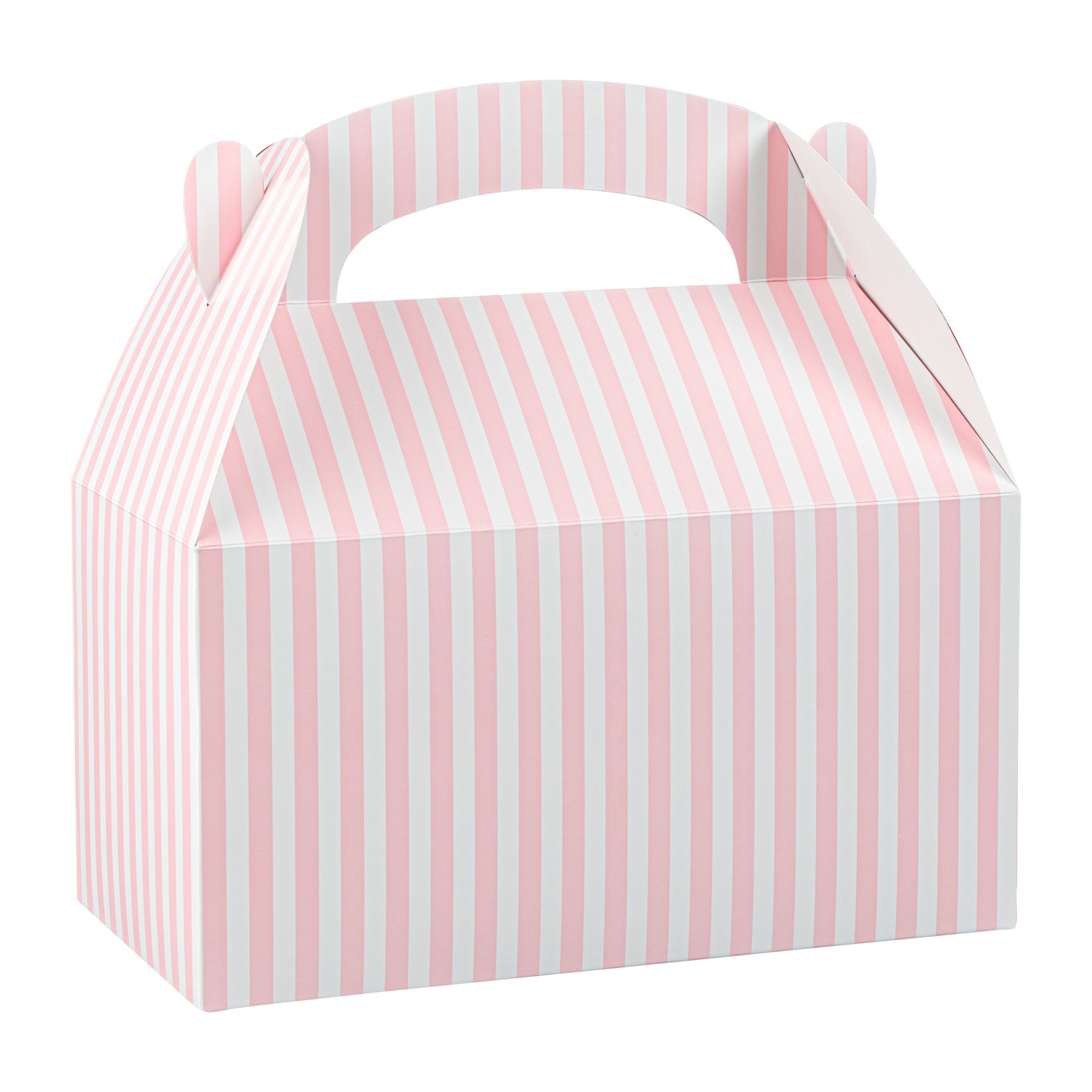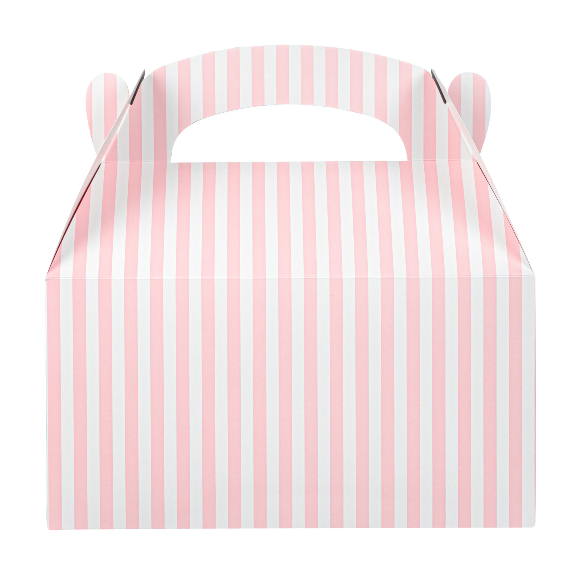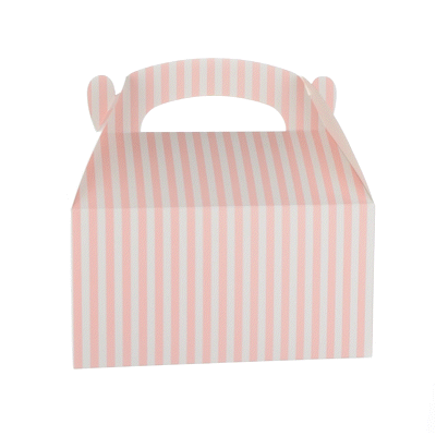 PINK & WHITE STRIPE PAPER GABLE BOX / TAKE OUT CONTAINER - COMPOSTABLE