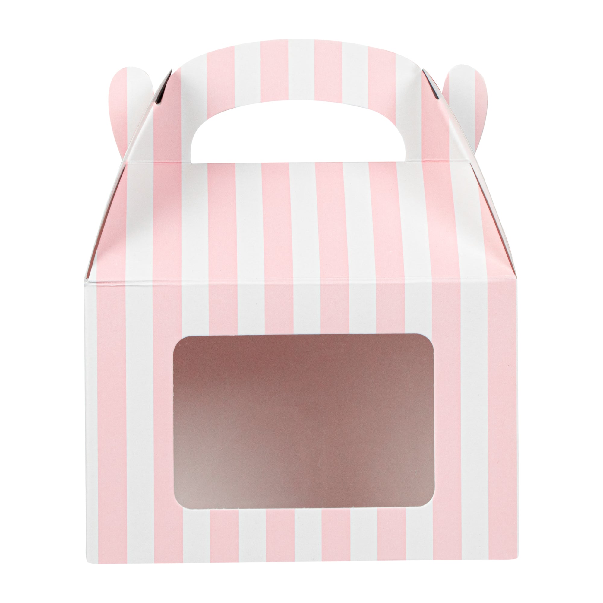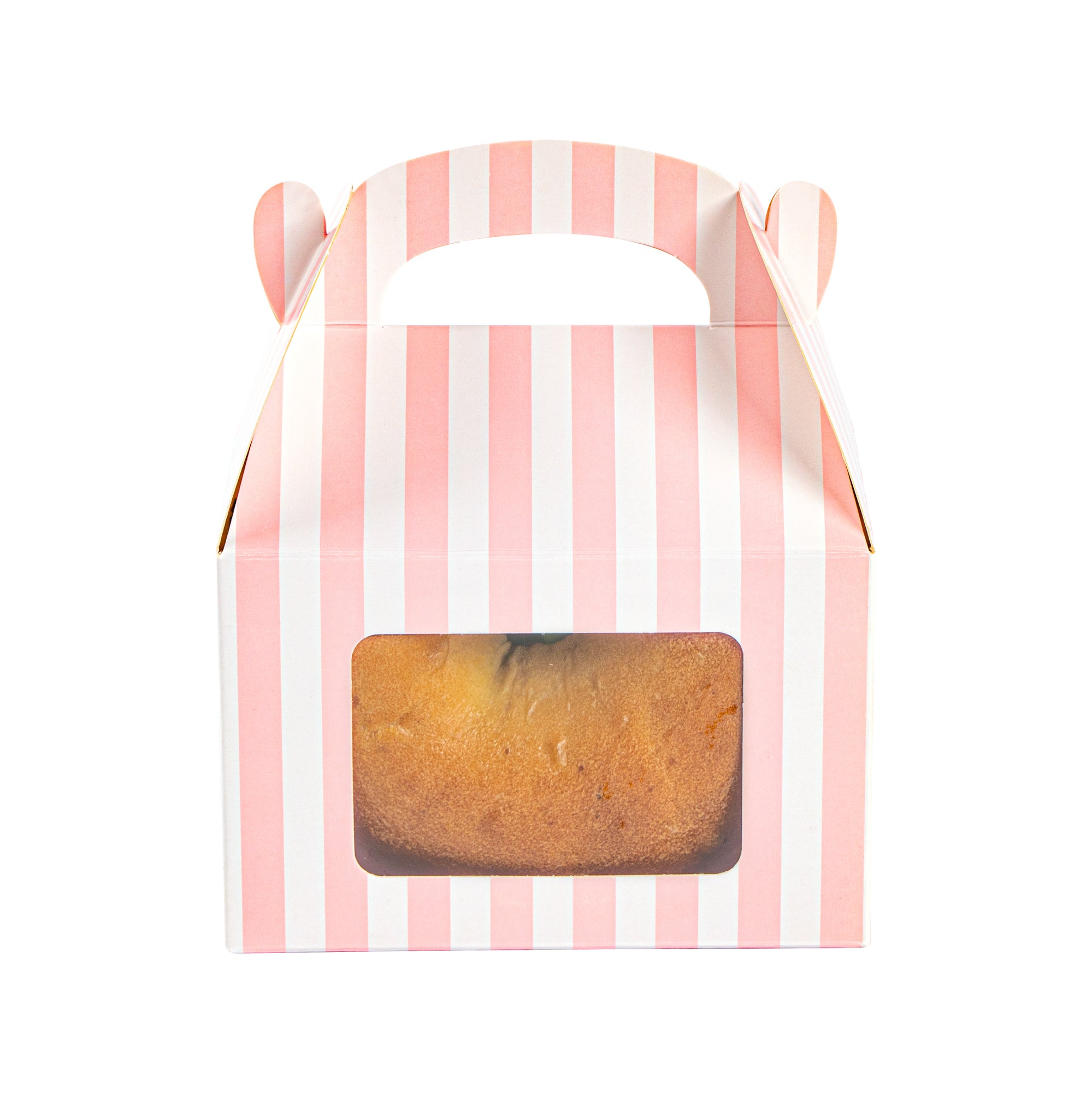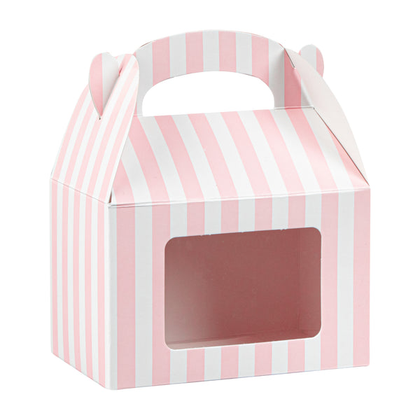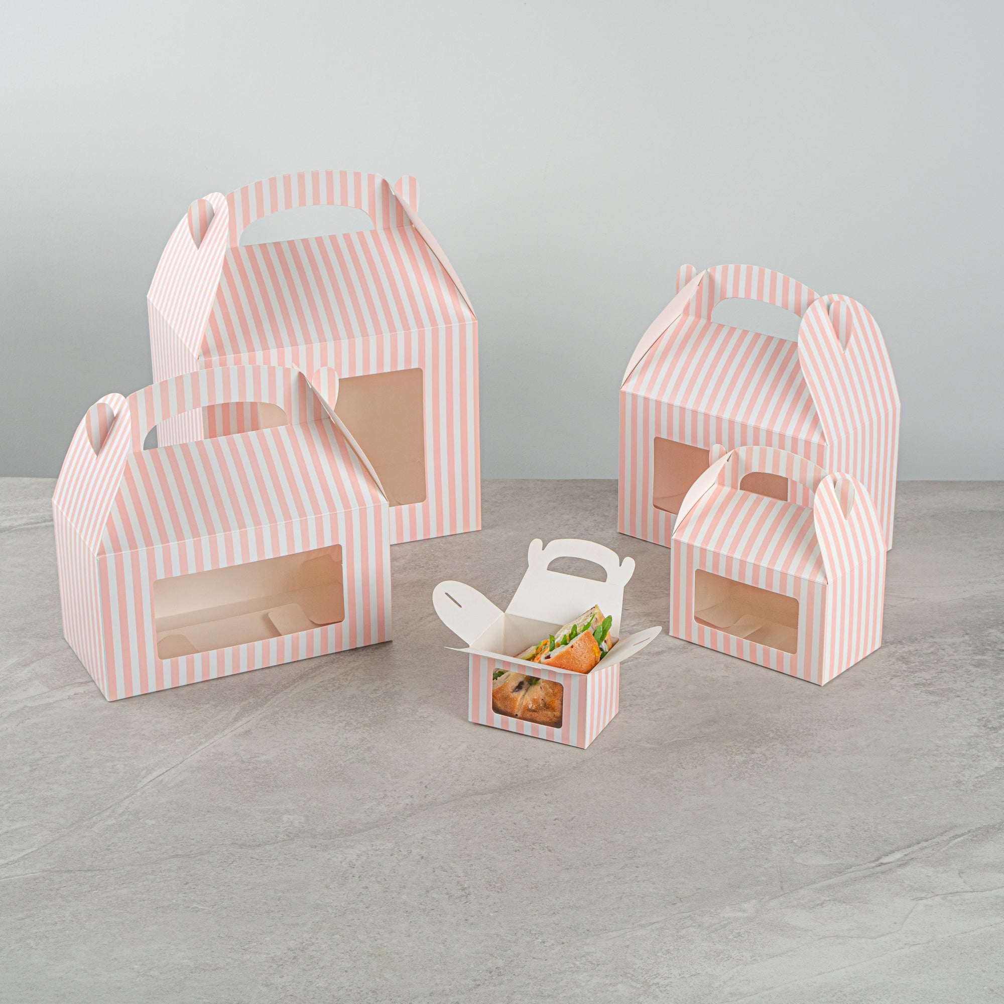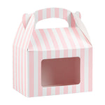 PINK & WHITE STRIPE PAPER GABLE BOX / TAKE OUT CONTAINER - WITH WINDOW