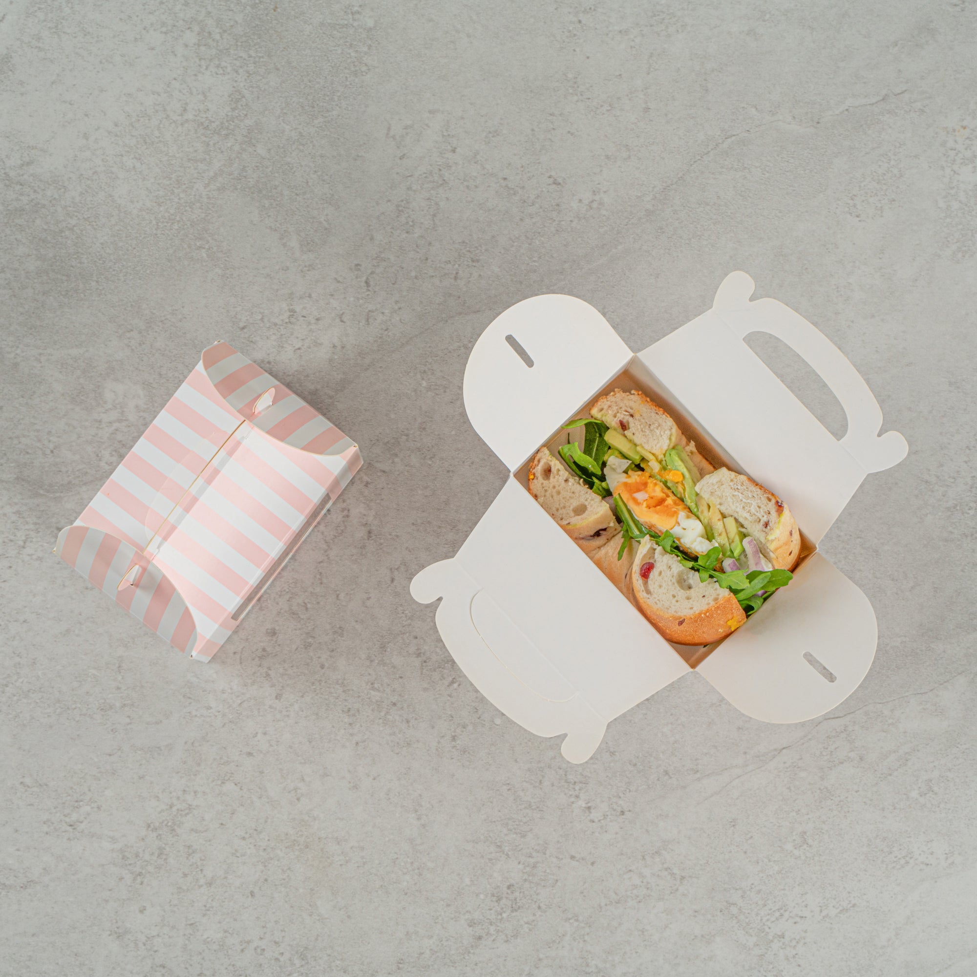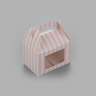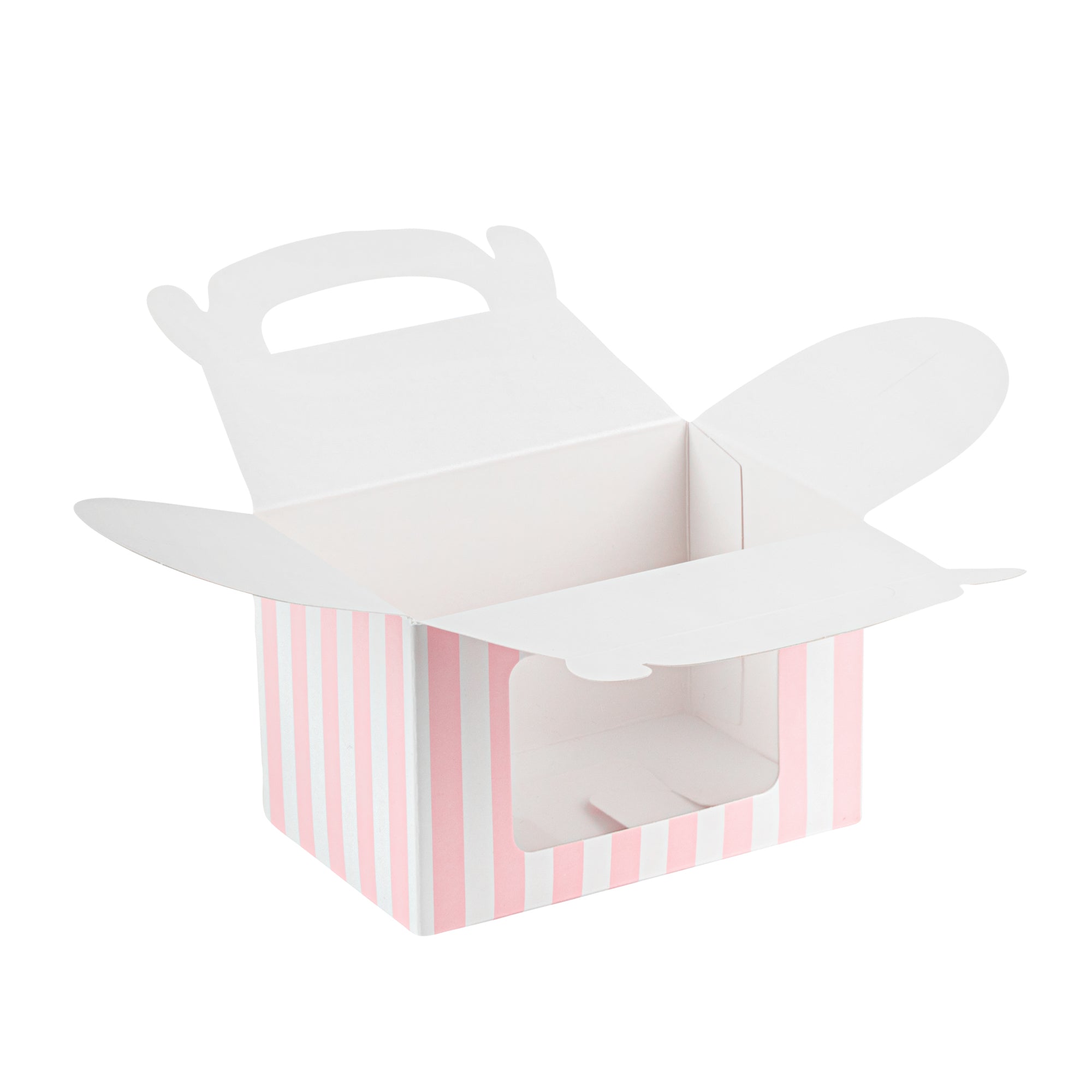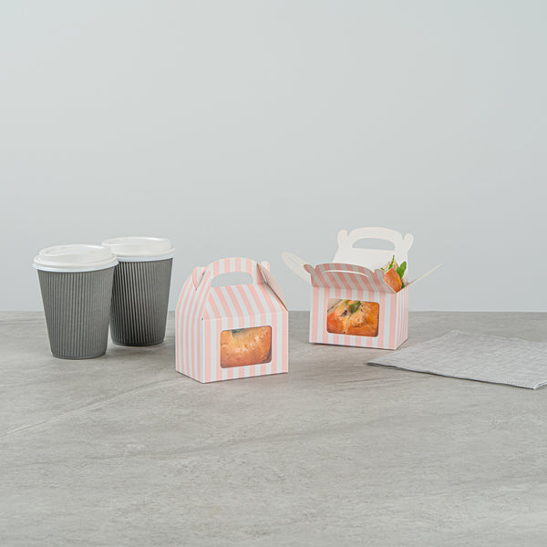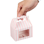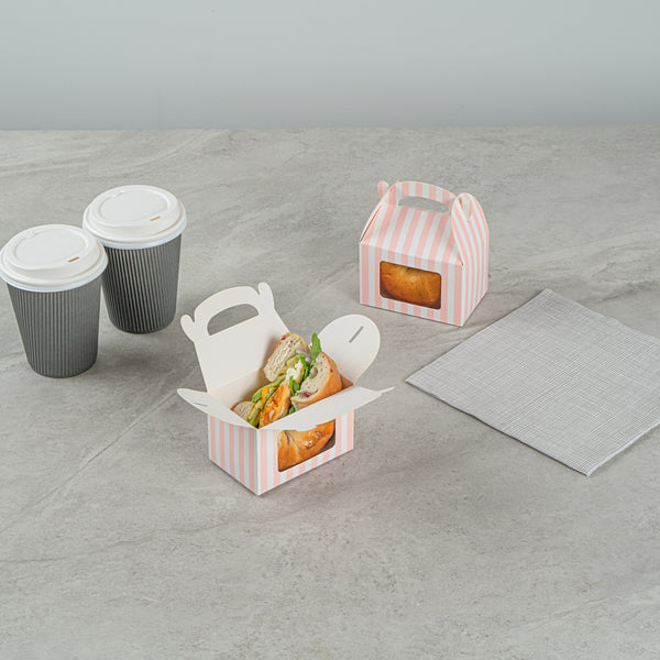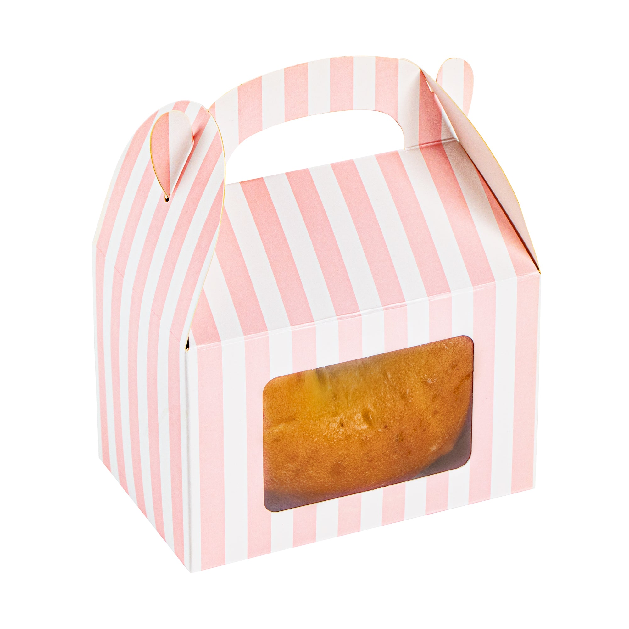 PINK & WHITE STRIPE PAPER GABLE BOX / TAKE OUT CONTAINER - WITH WINDOW