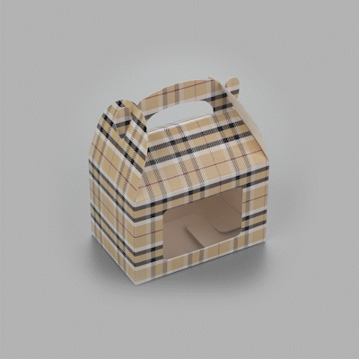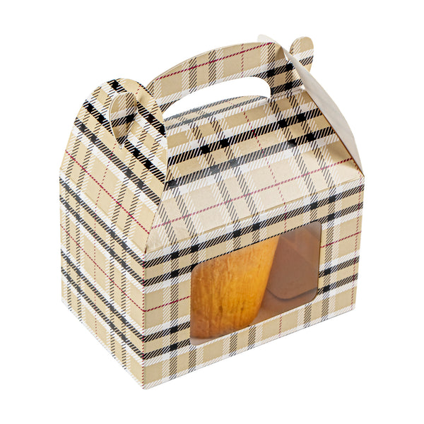 PLAID PAPER GABLE BOX / TAKE OUT CONTAINER - WITH WINDOW