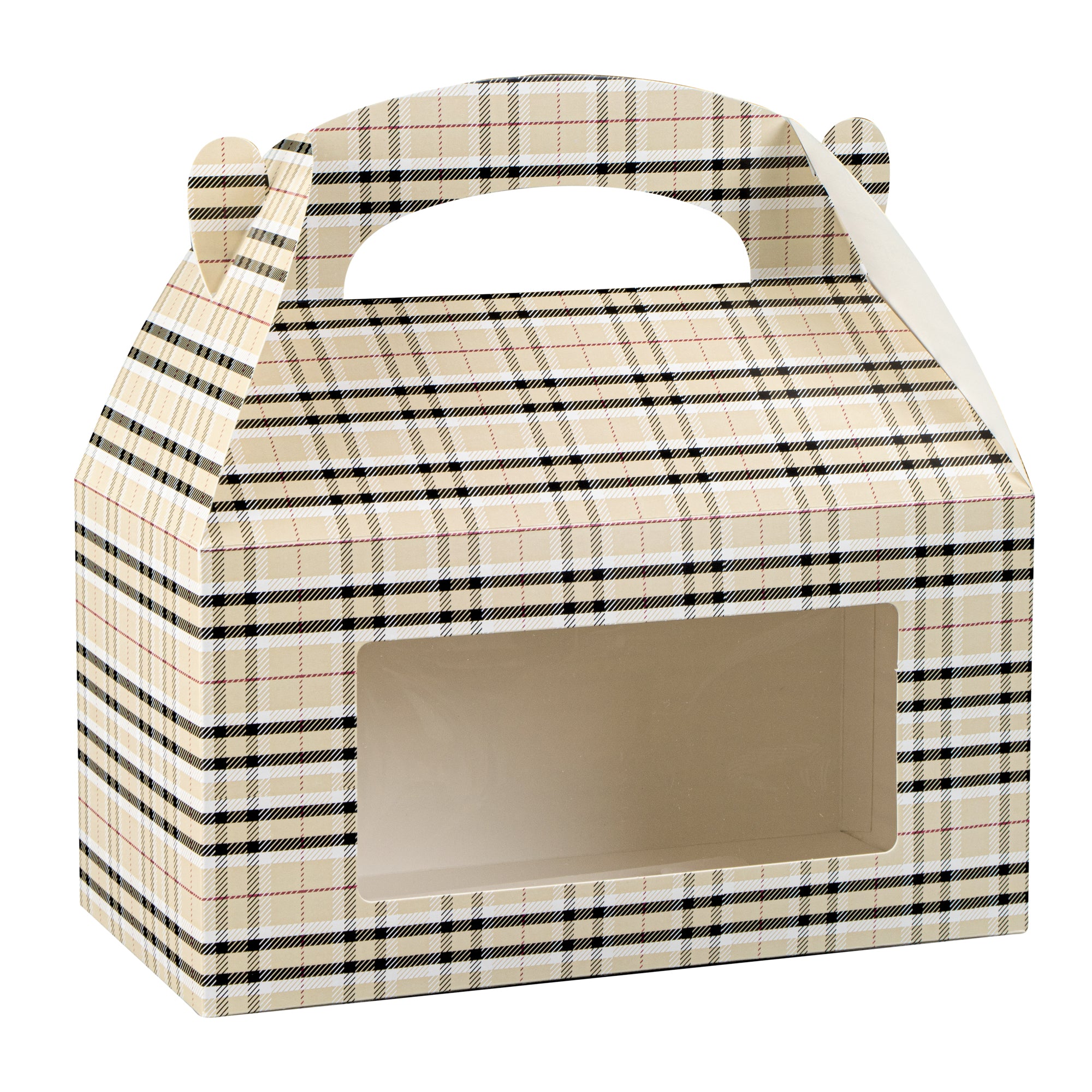 PLAID PAPER GABLE BOX / TAKE OUT CONTAINER - WITH WINDOW