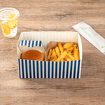 RECTANGLE BLUE AND WHITE STRIPE PAPER SANDWICH / BURGER OPEN TRAY