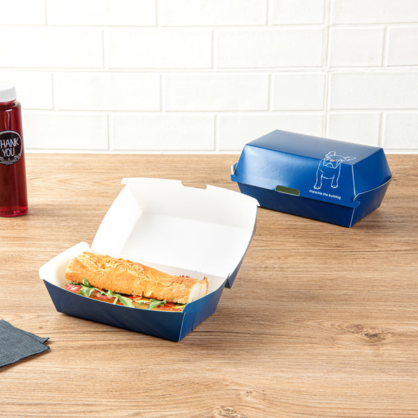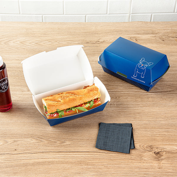 RECTANGLE FRENCHIE PAPER HOT DOG / SANDWICH CLAMSHELL CONTAINER