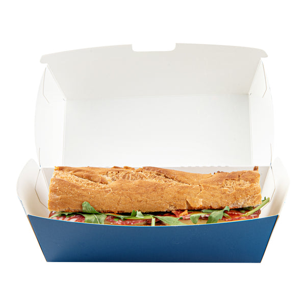 The greaseproof design of these paper hot dog containers retains any mess in your take out food experience. Say goodbye to soggy containers and oily leaks.