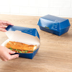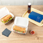 Made with robust paper, these disposable to go boxes are perfect for holding various food items without compromising on their structure. They are ideal for food trucks, picnics, and more.