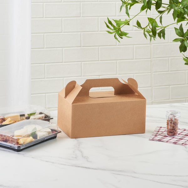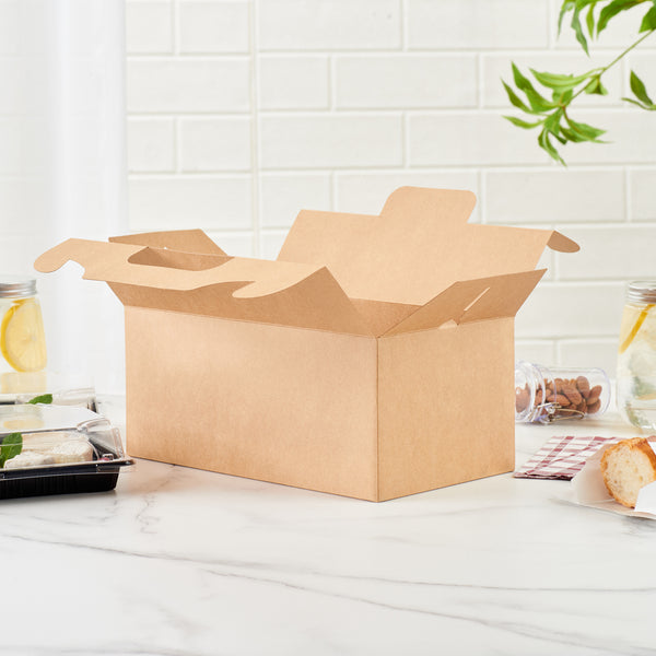 RECTANGLE KRAFT PAPER CAKE / TAKE OUT CONTAINER - SECURE TAB HANDLE