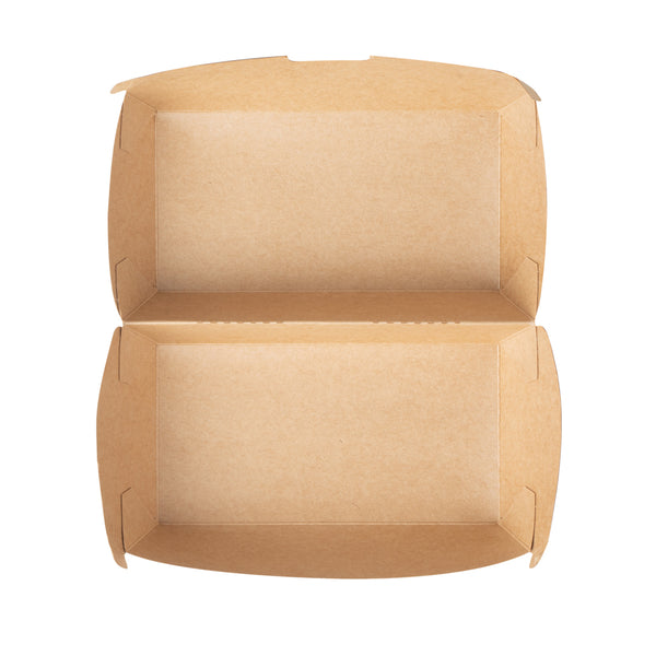 Made with robust paper, these disposable to go boxes are perfect for holding various food items without compromising on their structure. They are ideal for food trucks, picnics, and more.